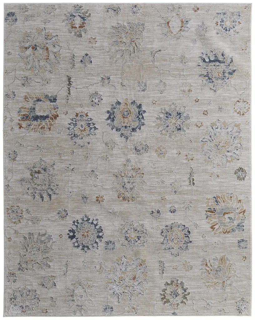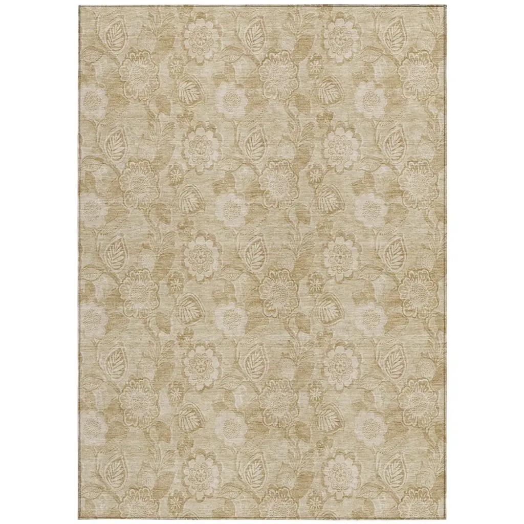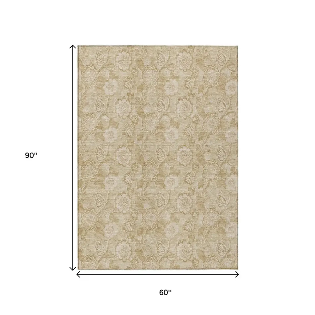 Homeroots 5' X 8' Beige And Tan Floral Washable Indoor Outdoor Area Rug