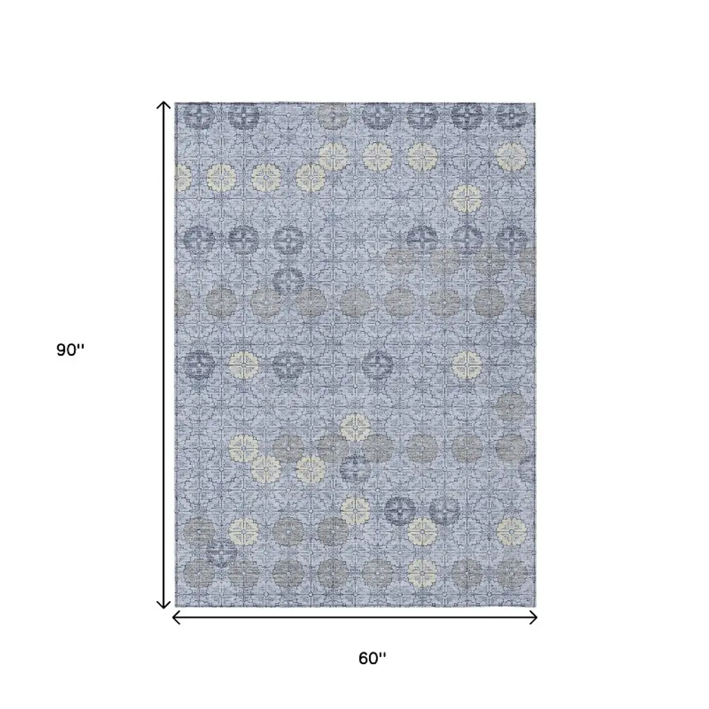 Homeroots 5' X 8' Blue And Ivory Geometric Washable Indoor Outdoor Area Rug