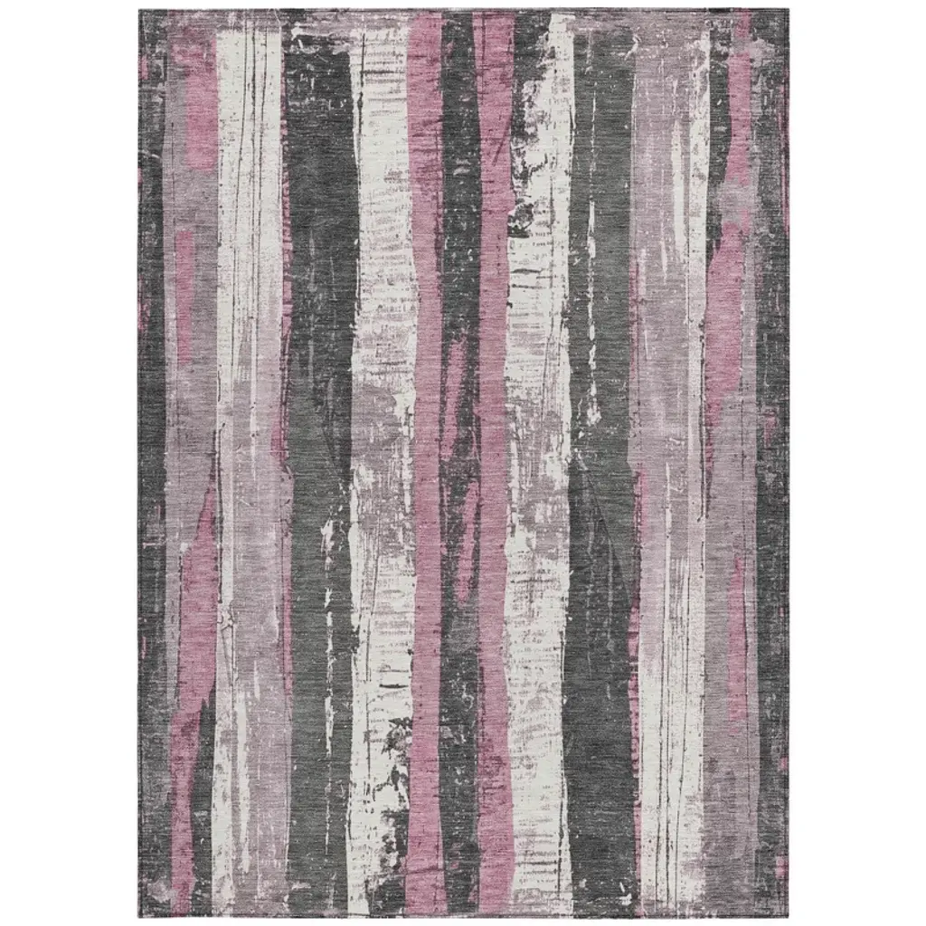 Homeroots 5' X 8' Blush And Gray Striped Washable Indoor Outdoor Area Rug