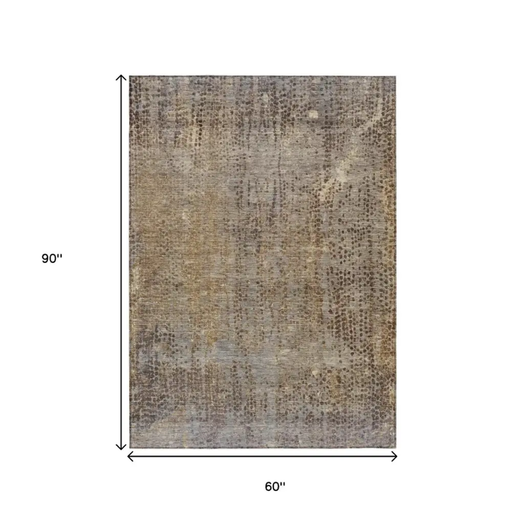 Homeroots 5' X 8' Brown And Ivory Abstract Washable Indoor Outdoor Area Rug