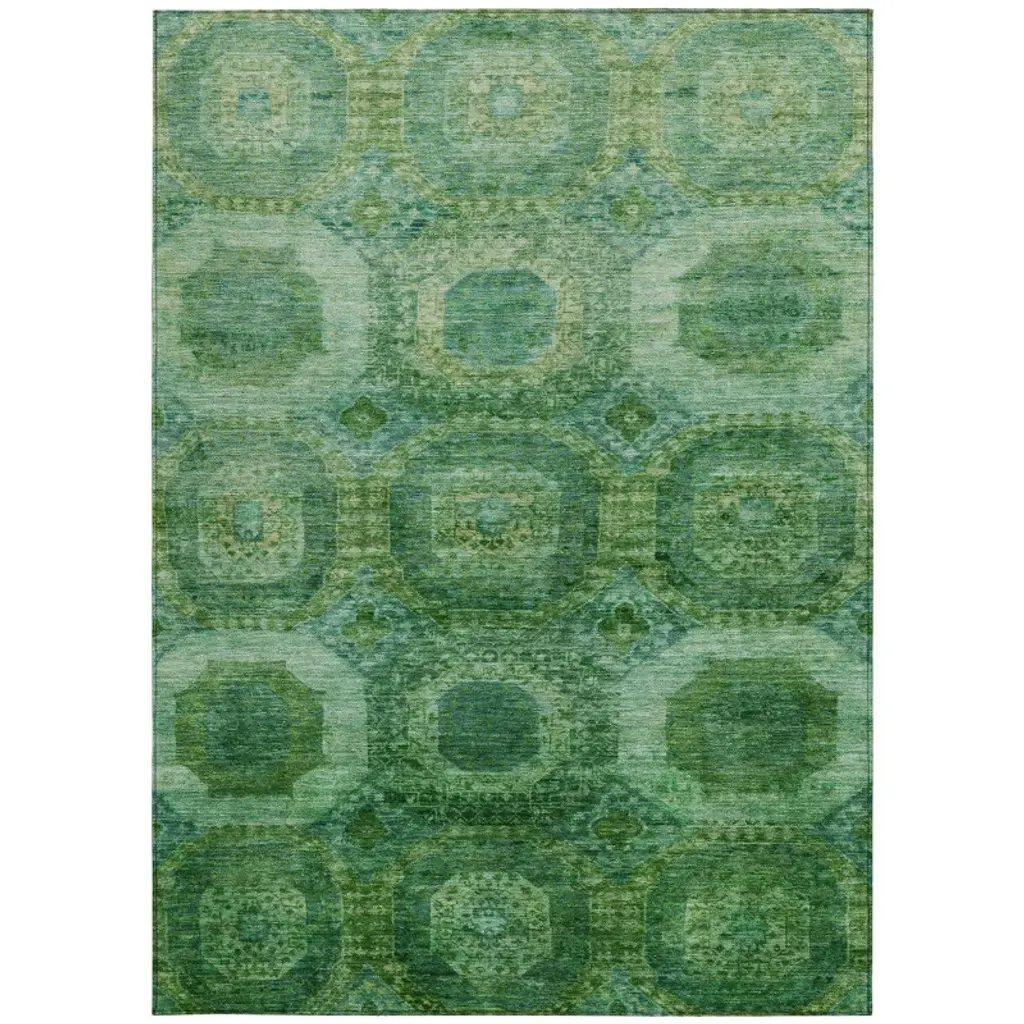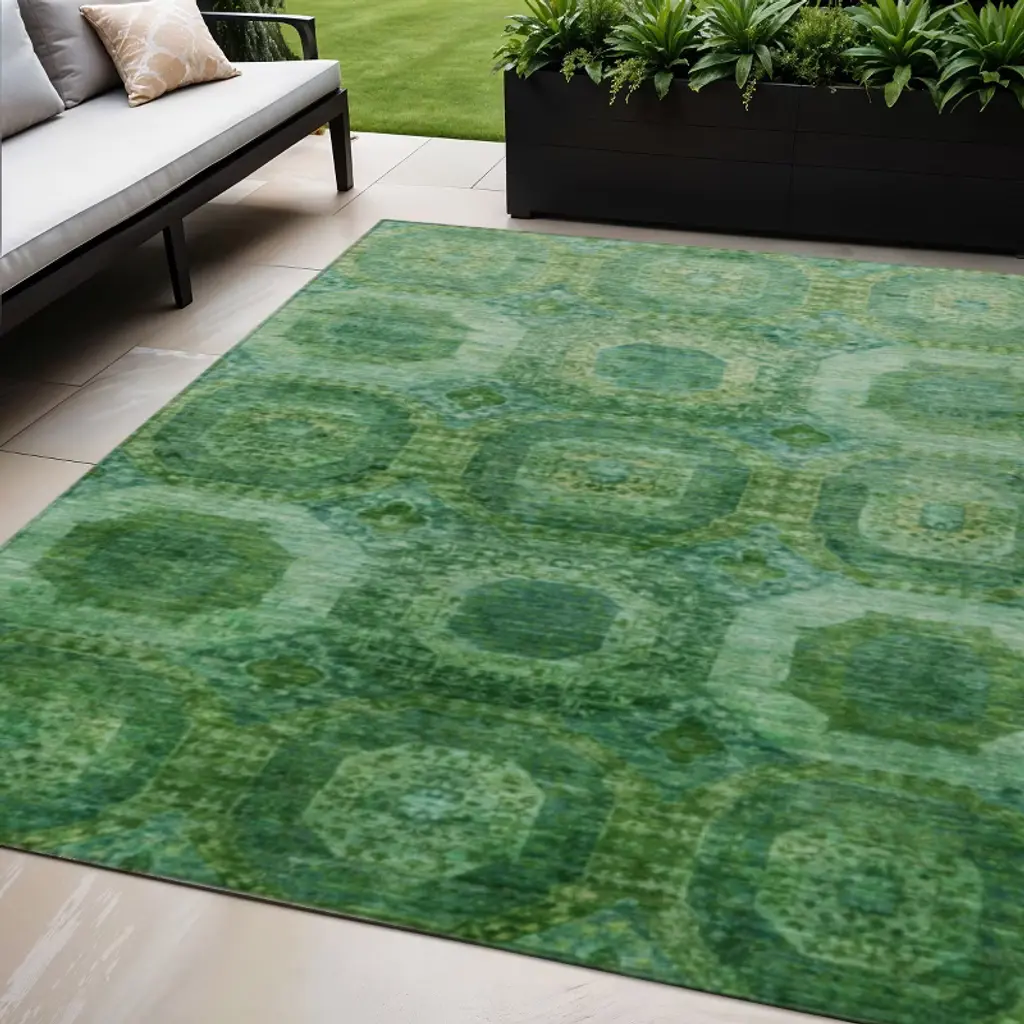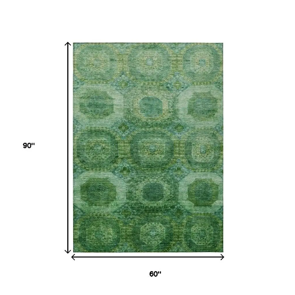 Homeroots 5' X 8' Emerald And Green Medallion Washable Indoor Outdoor Area Rug