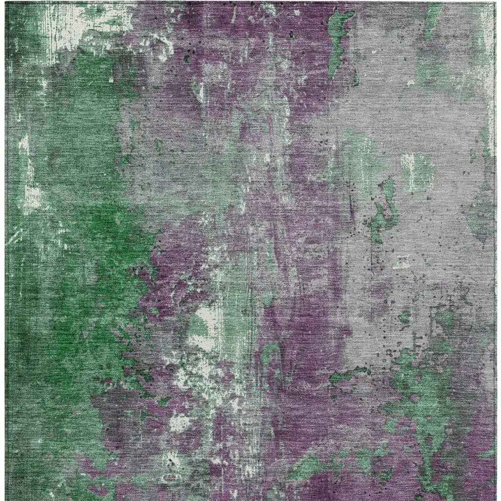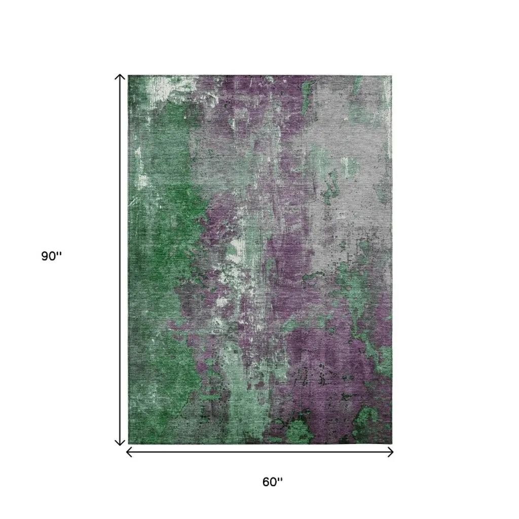 Homeroots 5' X 8' Emerald And Purple Abstract Washable Indoor Outdoor Area Rug