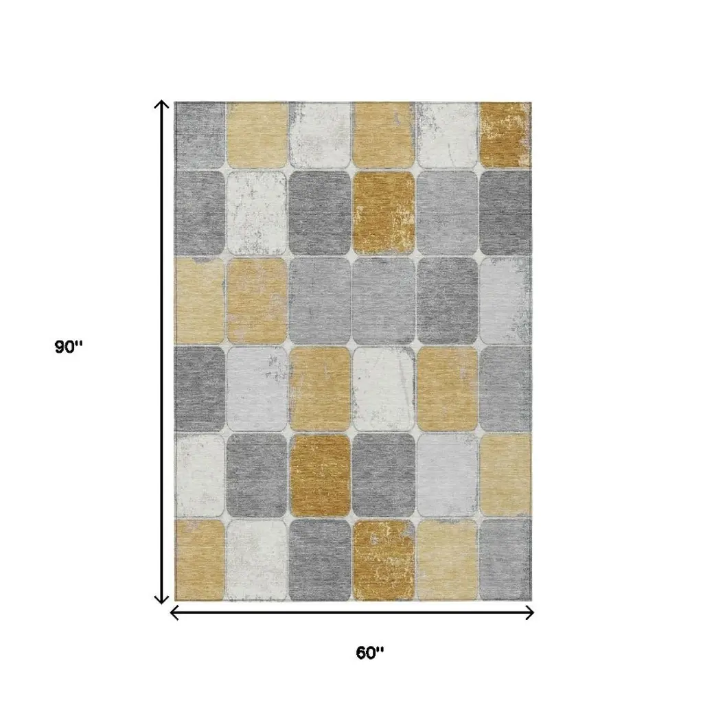 Homeroots 5' X 8' Gold And Gray Geometric Washable Indoor Outdoor Area Rug