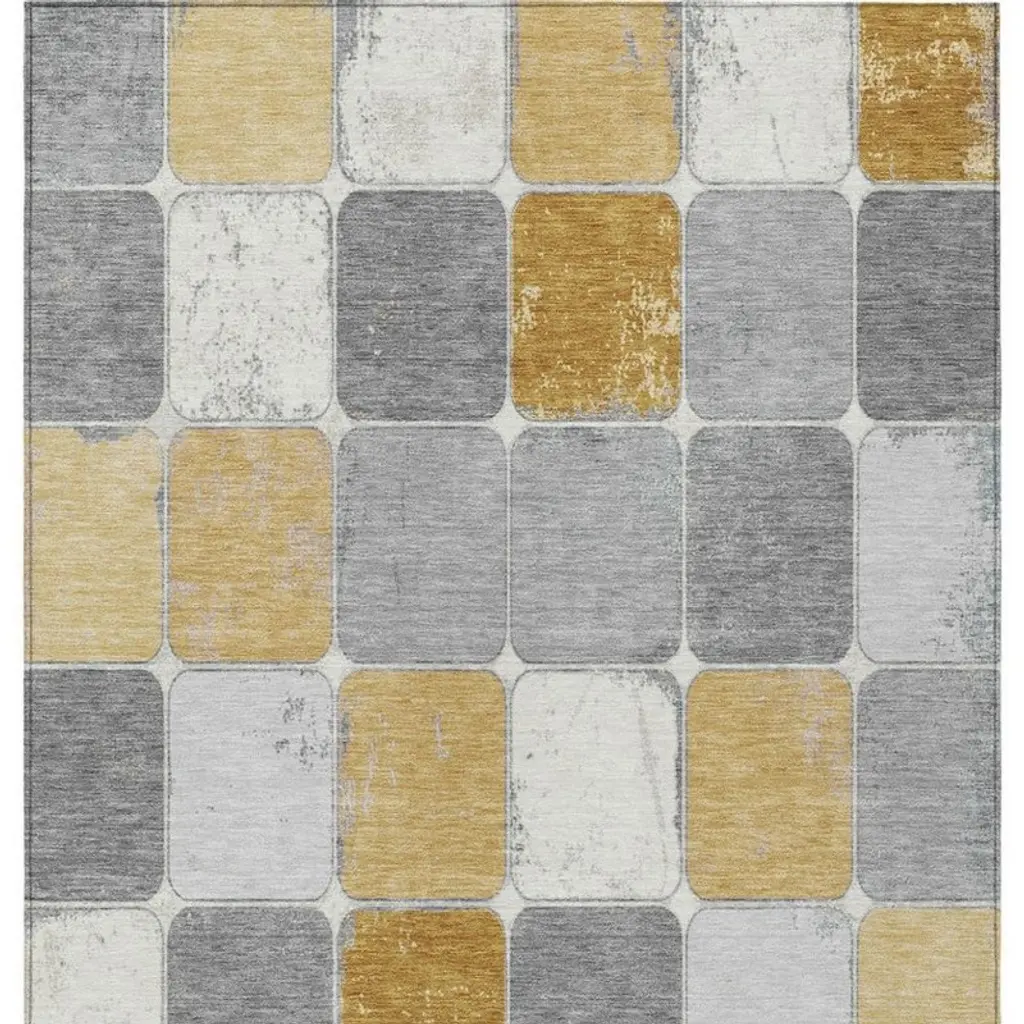 Set an inviting tone in your space with this 5-foot x 8-foot gold and gray geometric washable indoor outdoor area rug. This rectangle shaped rug features a geometric design that will work well both indoors or out. A classic shape marries with good looking design for your living room, hall, bedroom, porch, patio, or poolside. Ideal for outdoor spaces or high traffic areas with kids and pets, this rug is made from heavy duty polyester that is stain resistant to help repel water, dirt, and stains. Versatile in use, durable, and easy to maintain, this rug is an ideal solution to add a decorative and inviting touch to your indoor or outdoor space. 60-inch h x 90-inch w x 0.19-inch d.