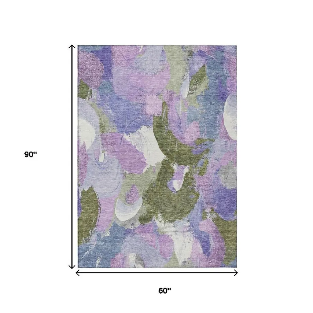 Homeroots 5' X 8' Lavender Ivory And Sage Abstract Washable Indoor Outdoor Area Rug