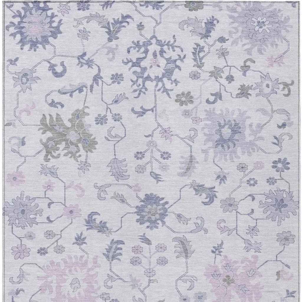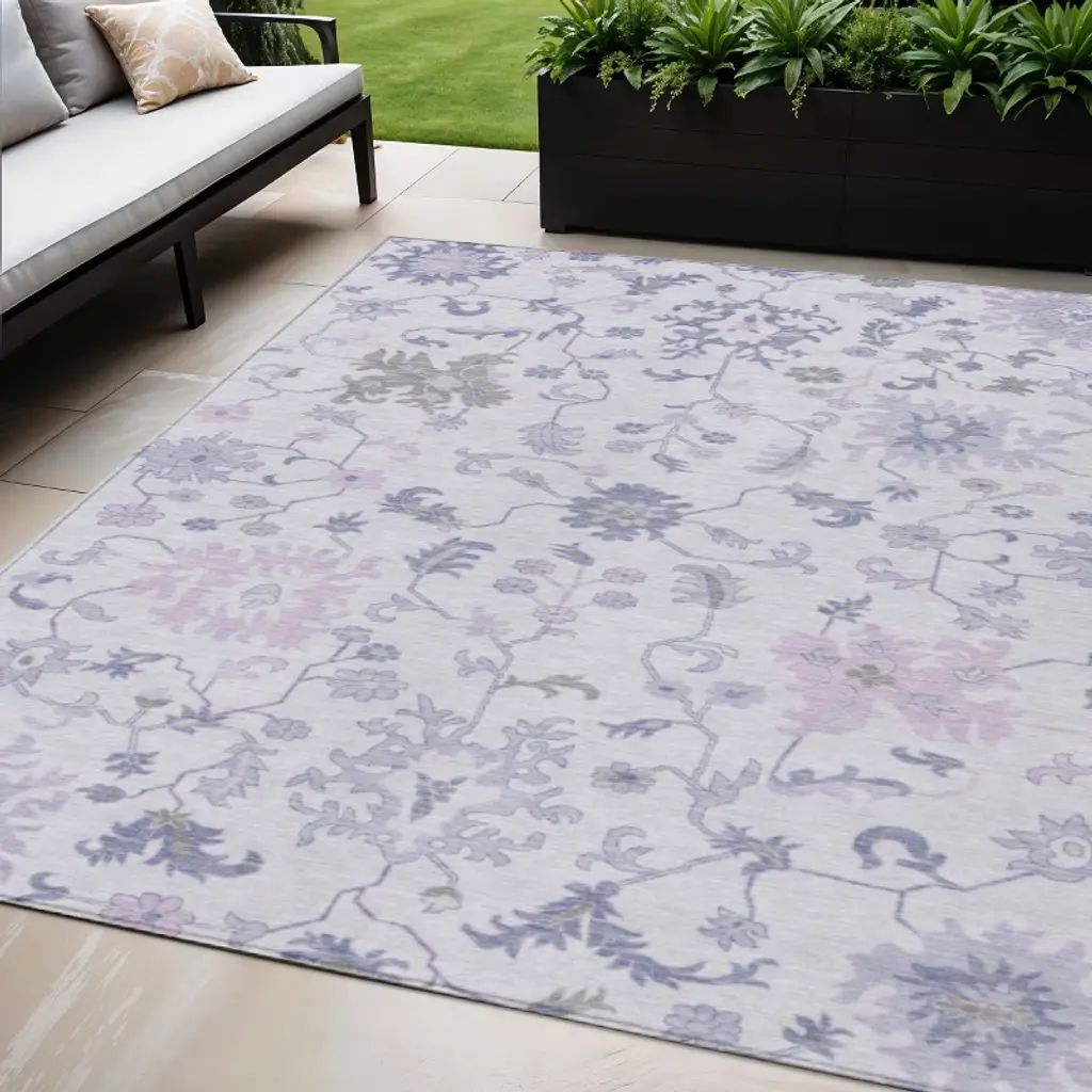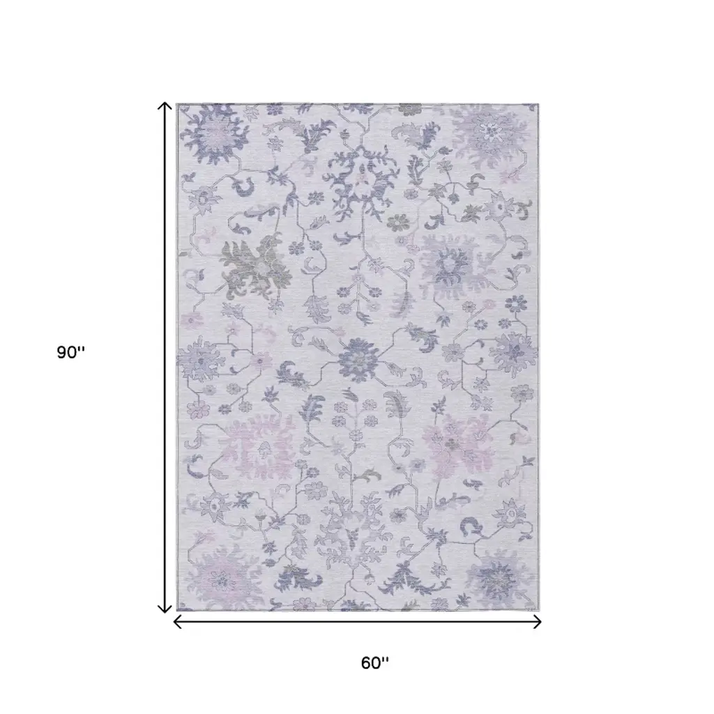 Homeroots 5' X 8' Lavender Mauve And Gray Floral Washable Indoor Outdoor Area Rug