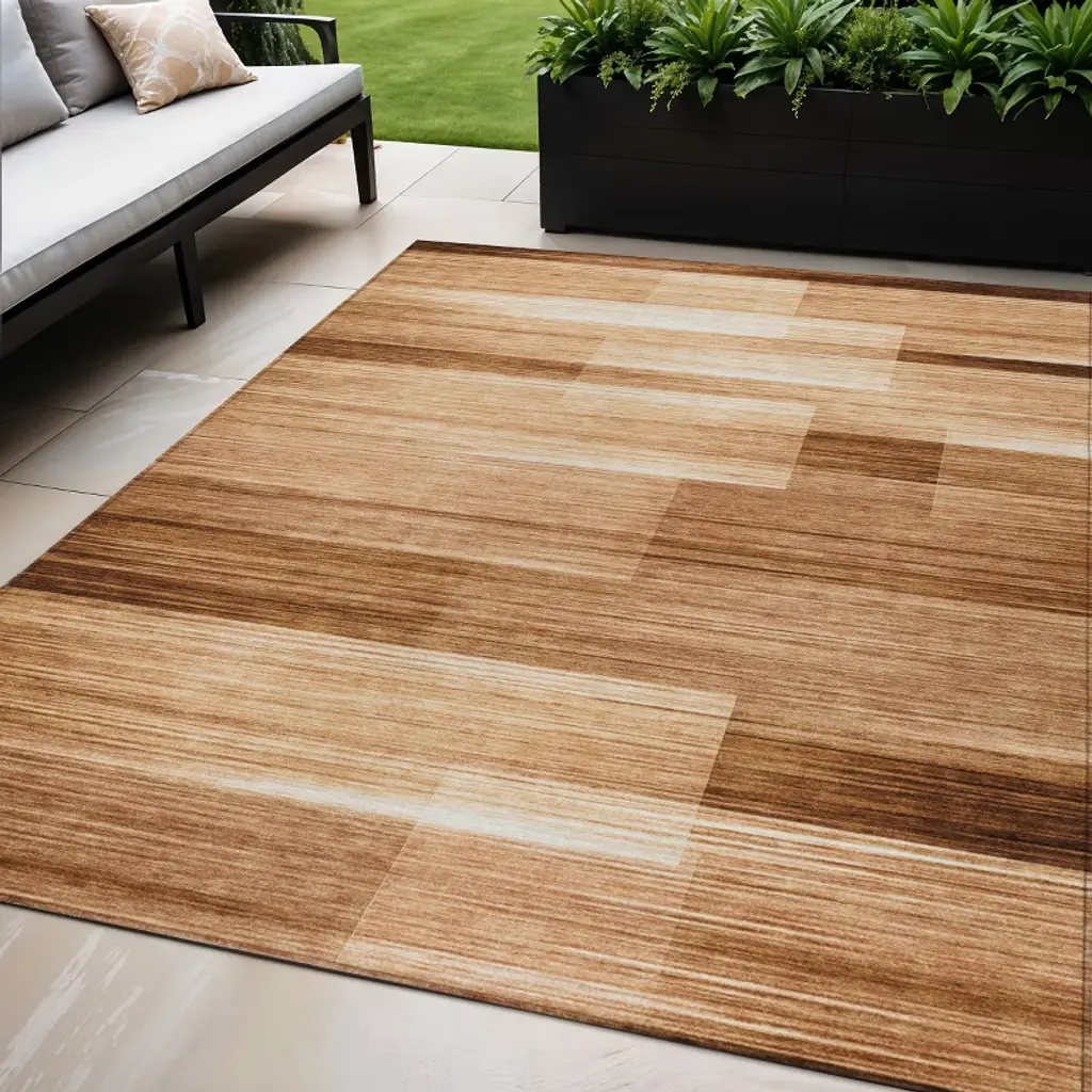 This 5-foot x 8-foot rust and ivory striped washable indoor outdoor area rug, is a great way to add warmth to a room. This rectangle shaped rug features a striped design that will work well both indoors or out. A classic shape marries with good looking design for your living room, hall, bedroom, porch, patio, or poolside. Ideal for outdoor spaces or high traffic areas with kids and pets, this rug is made from heavy duty polyester that is stain resistant to help repel water, dirt, and stains. Makes a great way to dress up your patio, porch, or poolside, but also works well as a durable and easy to maintain option in the kitchen, family room, or mudroom. 60-inch h x 90-inch w x 0.19-inch d.