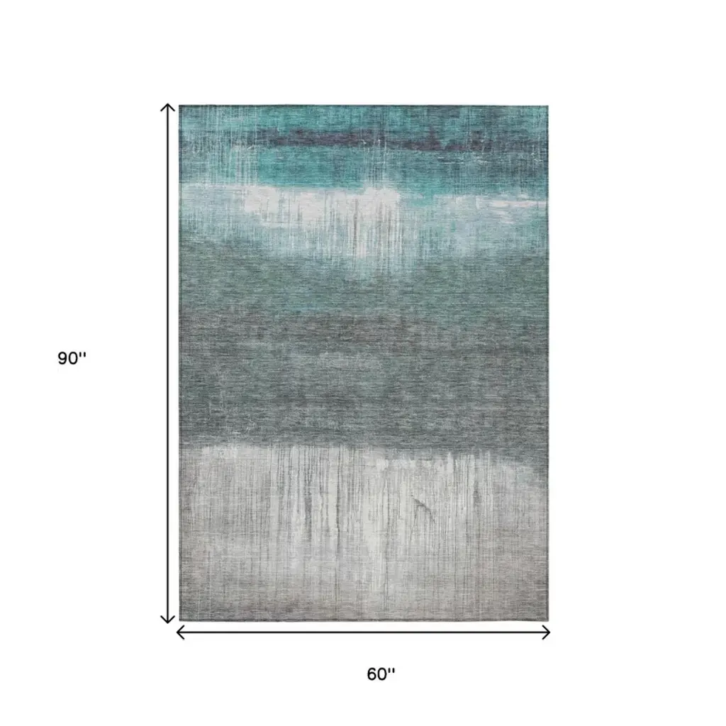 Homeroots 5' X 8' Teal Blue And Gray Abstract Washable Indoor Outdoor Area Rug