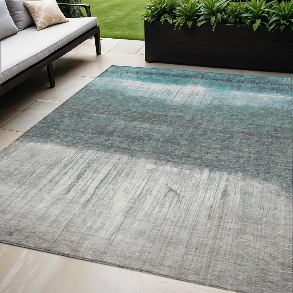 Set an inviting tone in your space with this 5-foot x 8-foot teal blue and gray abstract washable indoor outdoor area rug. This rectangle shaped rug features a abstract design that will work well both indoors or out. A classic shape marries with good looking design for your living room, hall, bedroom, porch, patio, or poolside. Ideal for outdoor spaces or high traffic areas with kids and pets, this rug is made from heavy duty polyester that is stain resistant to help repel water, dirt, and stains. Versatile in use, durable, and easy to maintain, this rug is an ideal solution to add a decorative and inviting touch to your indoor or outdoor space. 60-inch h x 90-inch w x 0.19-inch d.