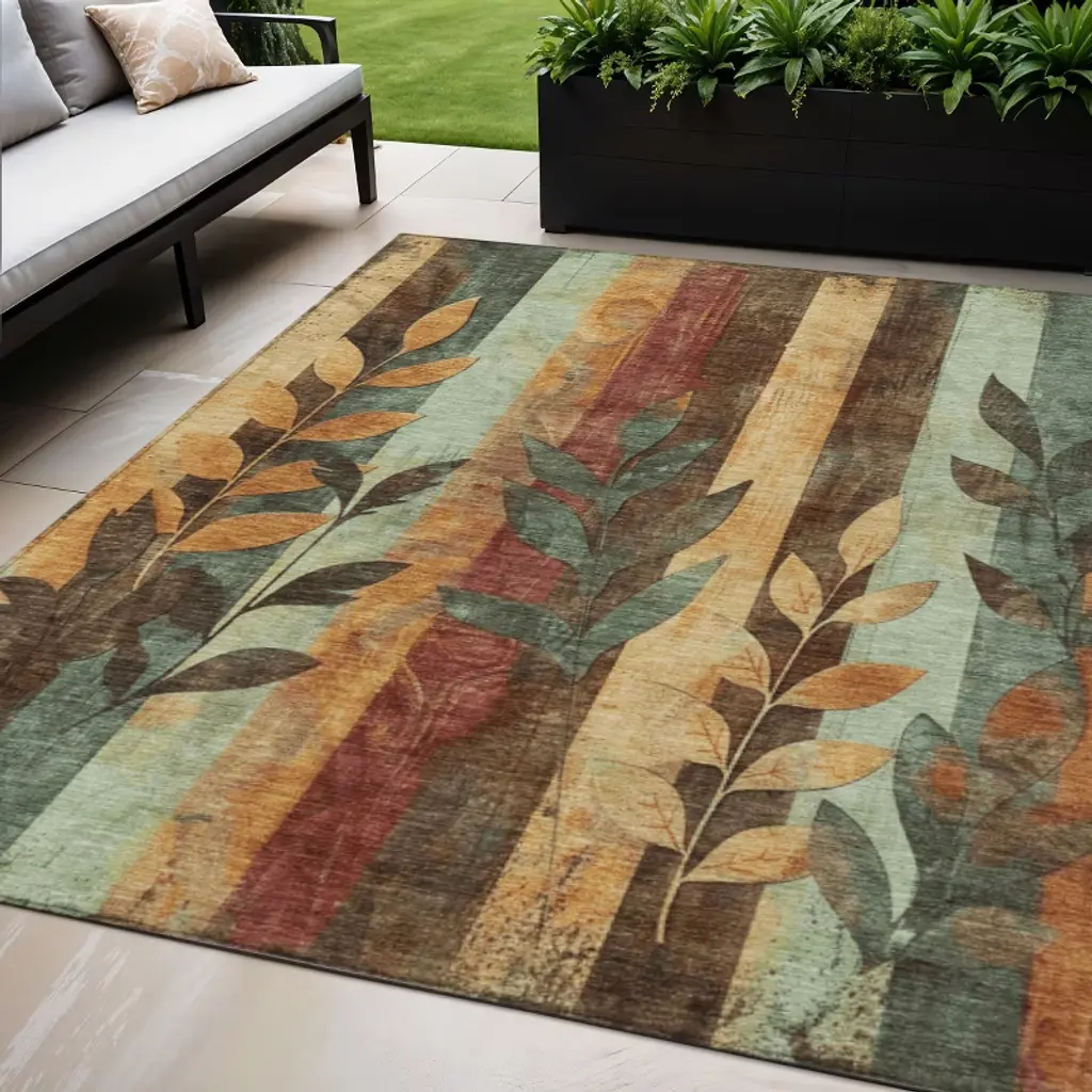 Add some artistry to your room with this 5-foot x 8-foot wheat and gold floral washable indoor outdoor area rug. This rectangle shaped rug features a floral design that will work well both indoors or out. A classic shape marries with good looking design for your living room, hall, bedroom, porch, patio, or poolside. Ideal for outdoor spaces or high traffic areas with kids and pets, this rug is made from heavy duty polyester that is stain resistant to help repel water, dirt, and stains. Versatile in use, durable, and easy to maintain, this rug is an ideal solution to add a decorative and inviting touch to your indoor or outdoor space. 60-inch h x 90-inch w x 0.19-inch d.