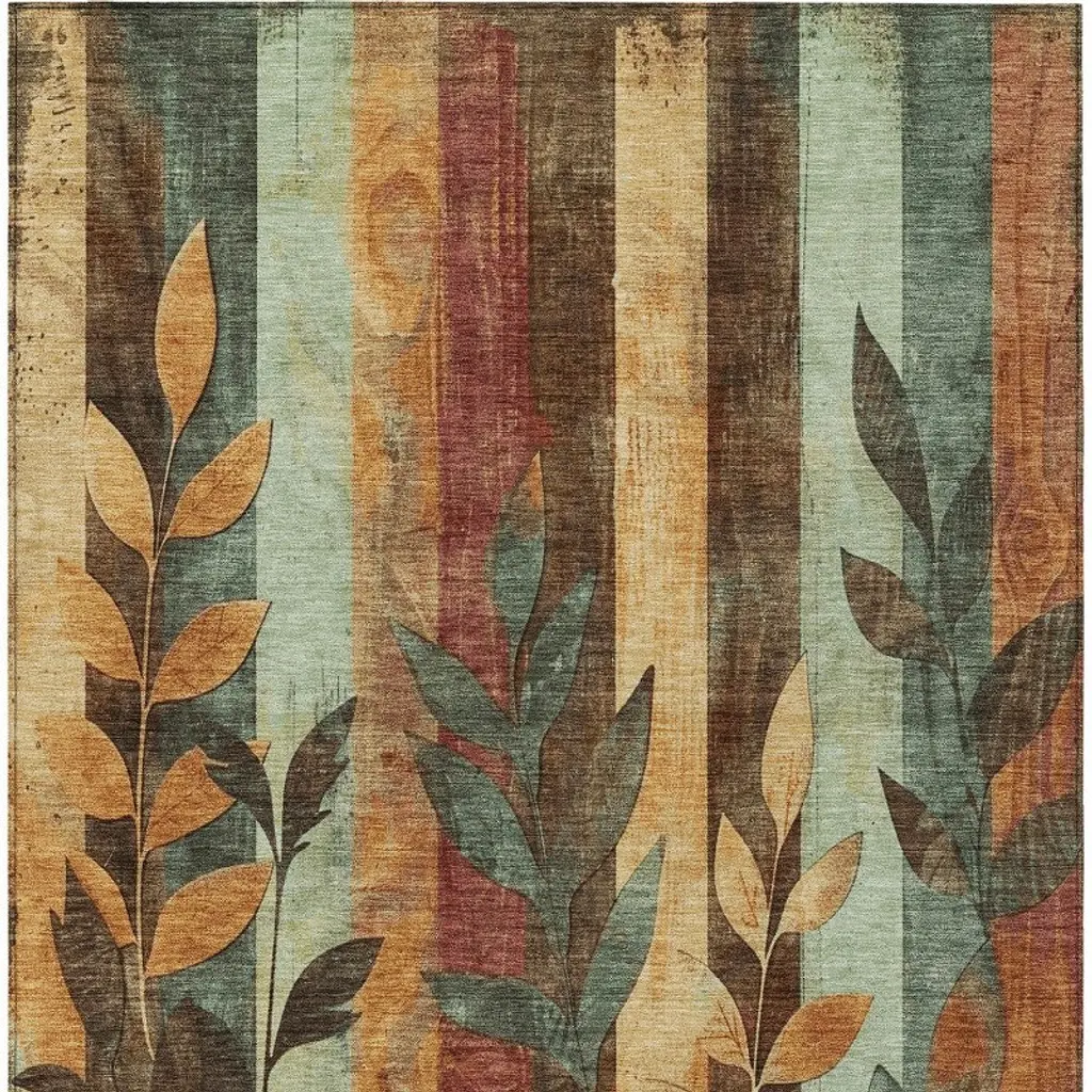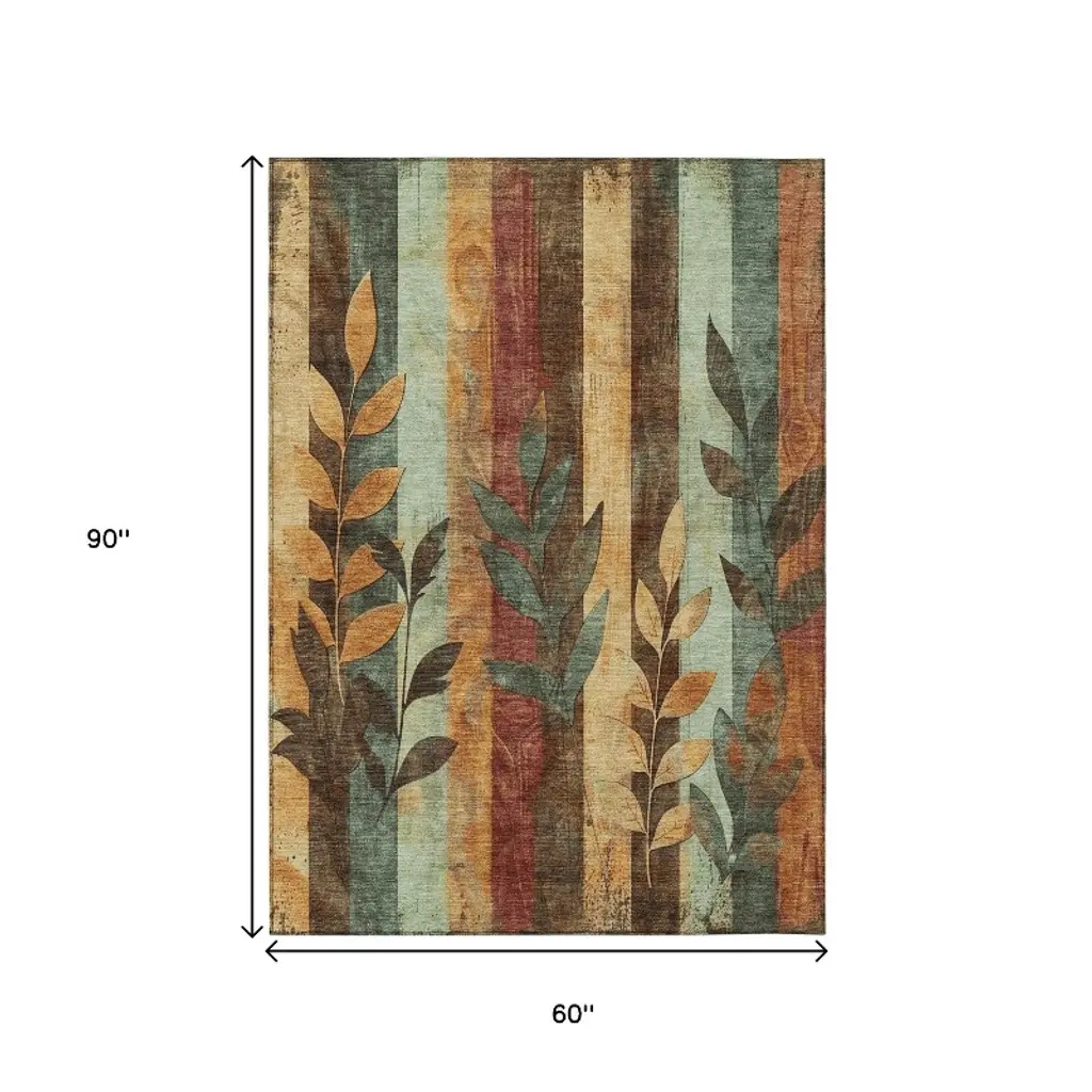 Homeroots 5' X 8' Wheat And Gold Floral Washable Indoor Outdoor Area Rug