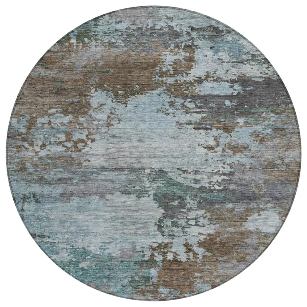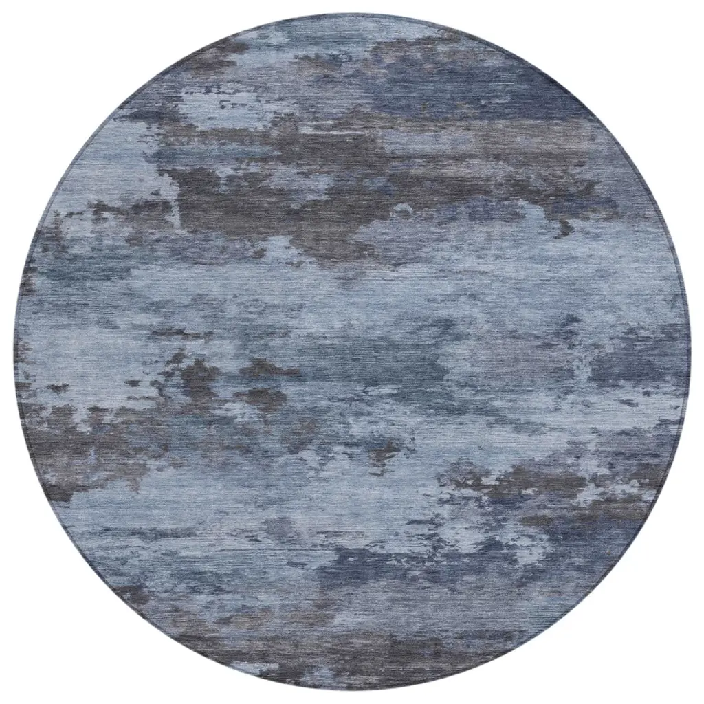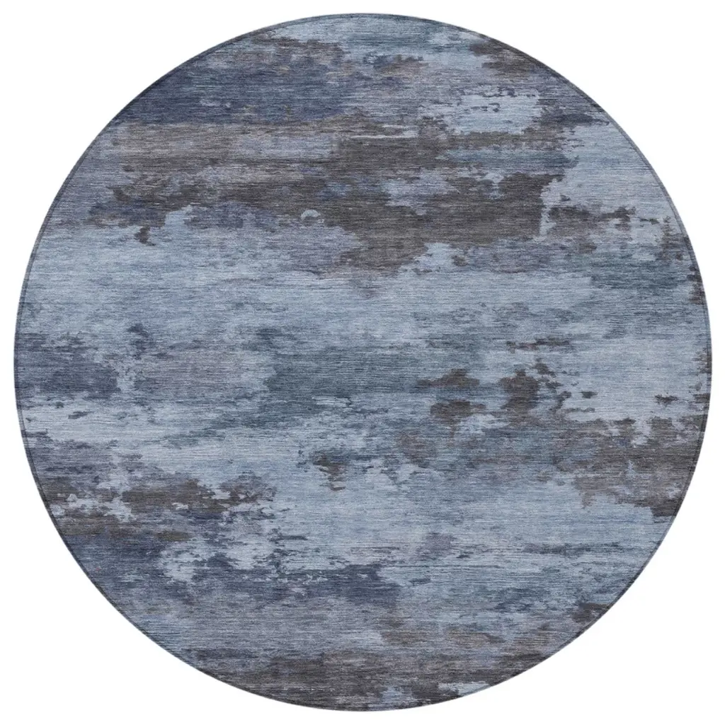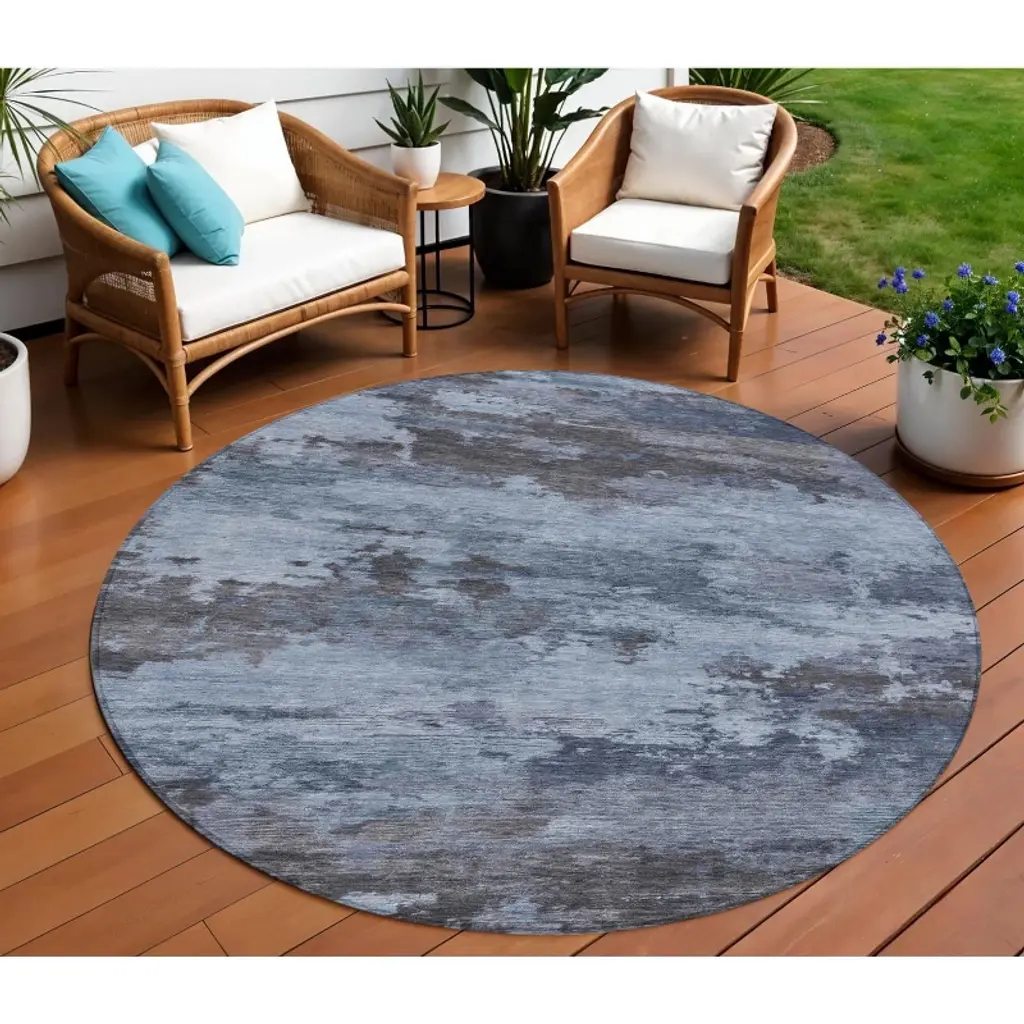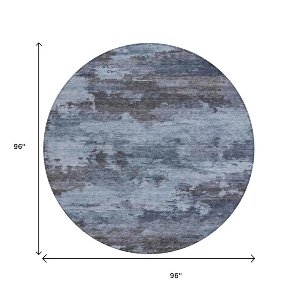 Homeroots 8' Blue And Charcoal Round Abstract Washable Indoor Outdoor Area Rug