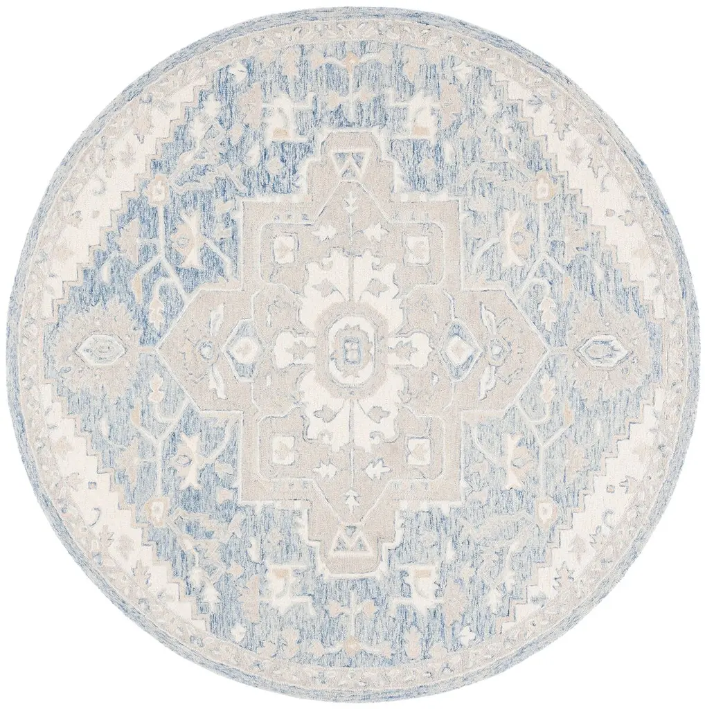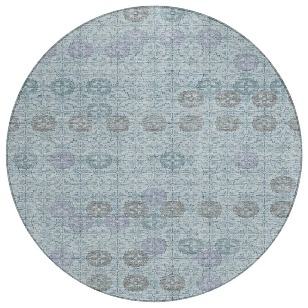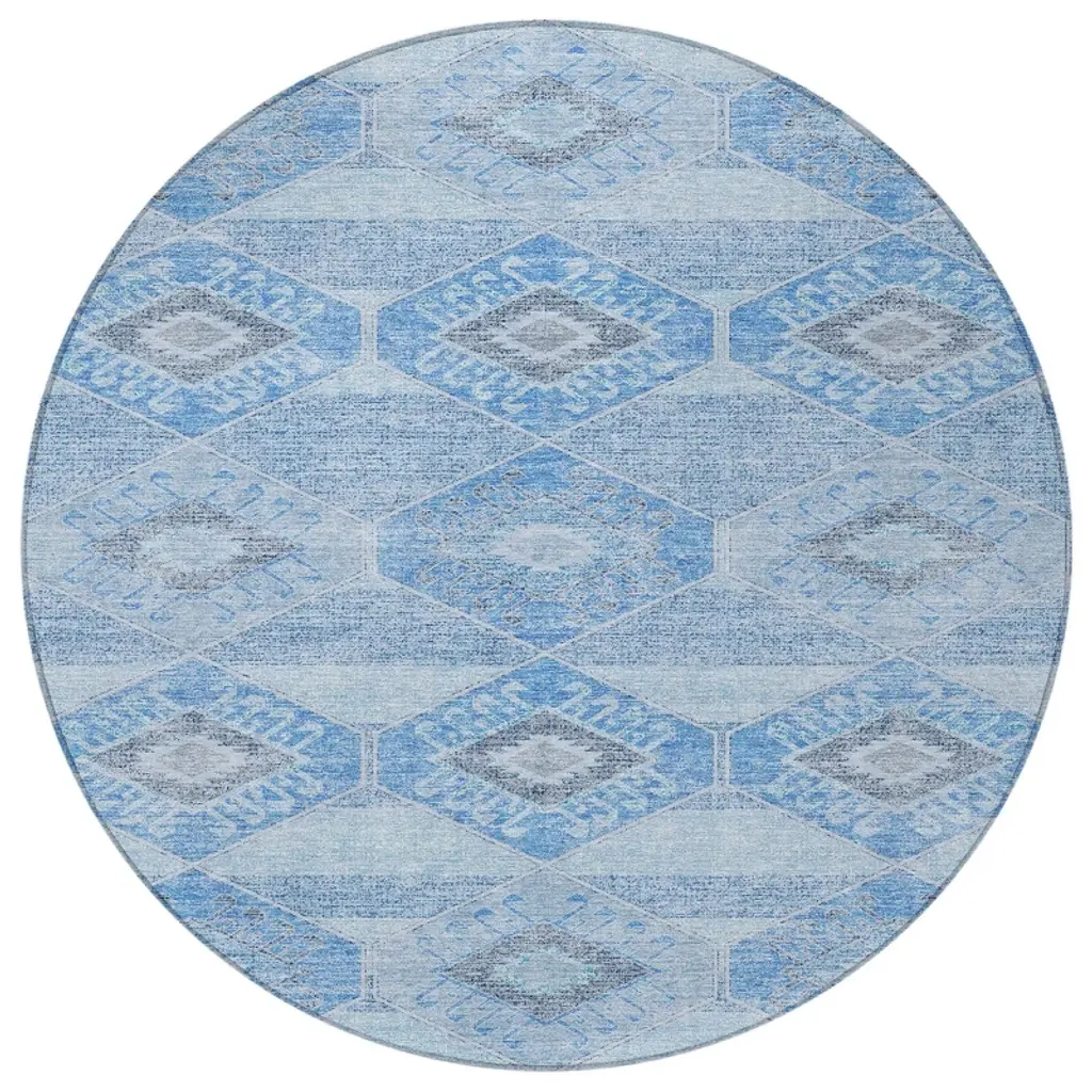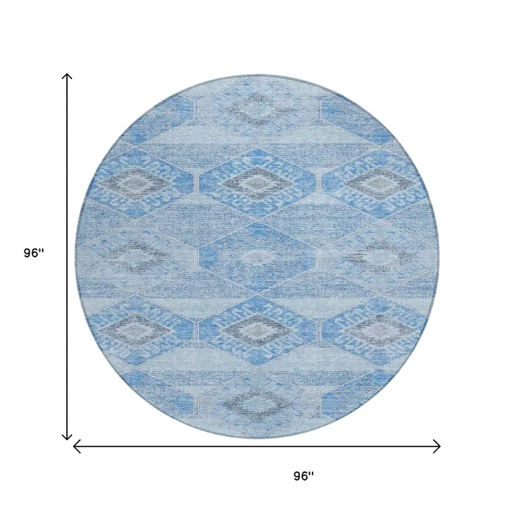 Homeroots 8' Blue And Gray Round Aztec Washable Indoor Outdoor Area Rug