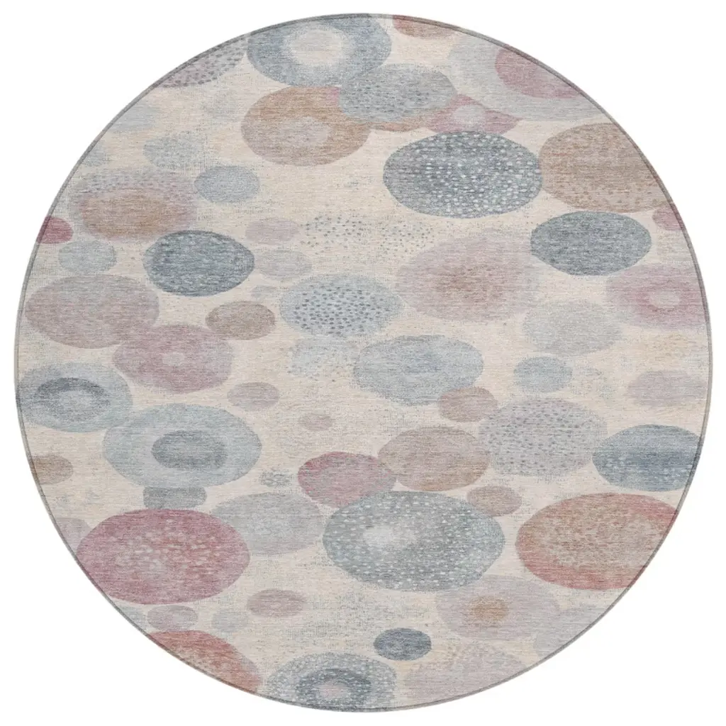 Add some artistry to your room with this 8-foot blush charcoal and ivory round geometric washable indoor outdoor area rug. This geometric round shaped rug features a geometric pattern in blush, charcoal, and ivory that combines a good looking print with a unique and updated shape. The mix of shape, color, and design gives this rug refreshing visual interest. Ideal for outdoor spaces or high traffic areas with kids and pets, this rug is made from heavy duty polyester that is stain resistant to help repel water, dirt, and stains. Makes a great way to dress up your patio, porch, or poolside, but also works well as a durable and easy to maintain option in the kitchen, family room, or mudroom. 96-inch h x 96-inch w x 0.19-inch d.