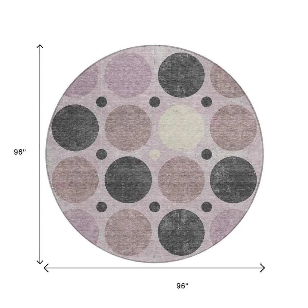 Homeroots 8' Blush Charcoal And Ivory Round Geometric Washable Indoor Outdoor Area Rug