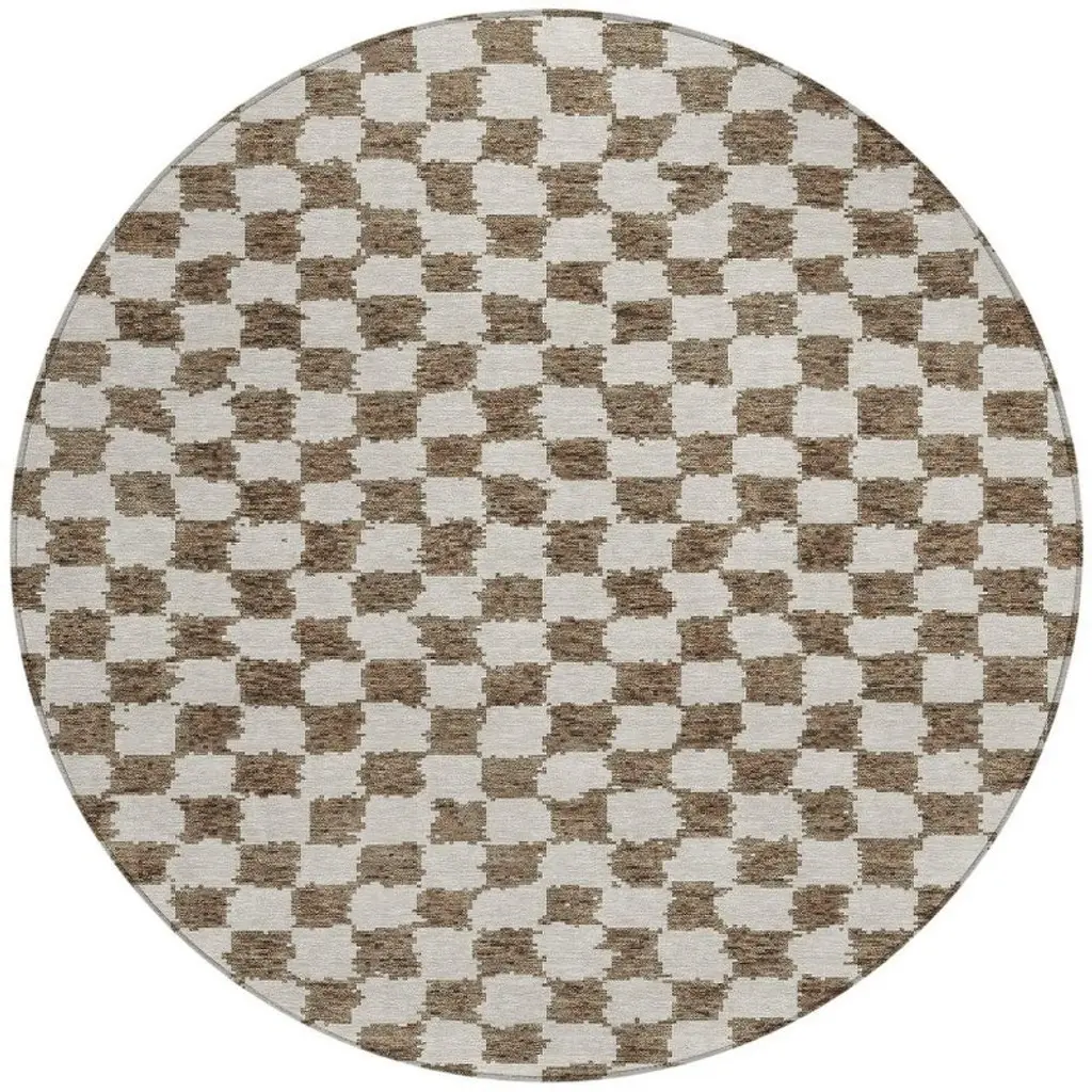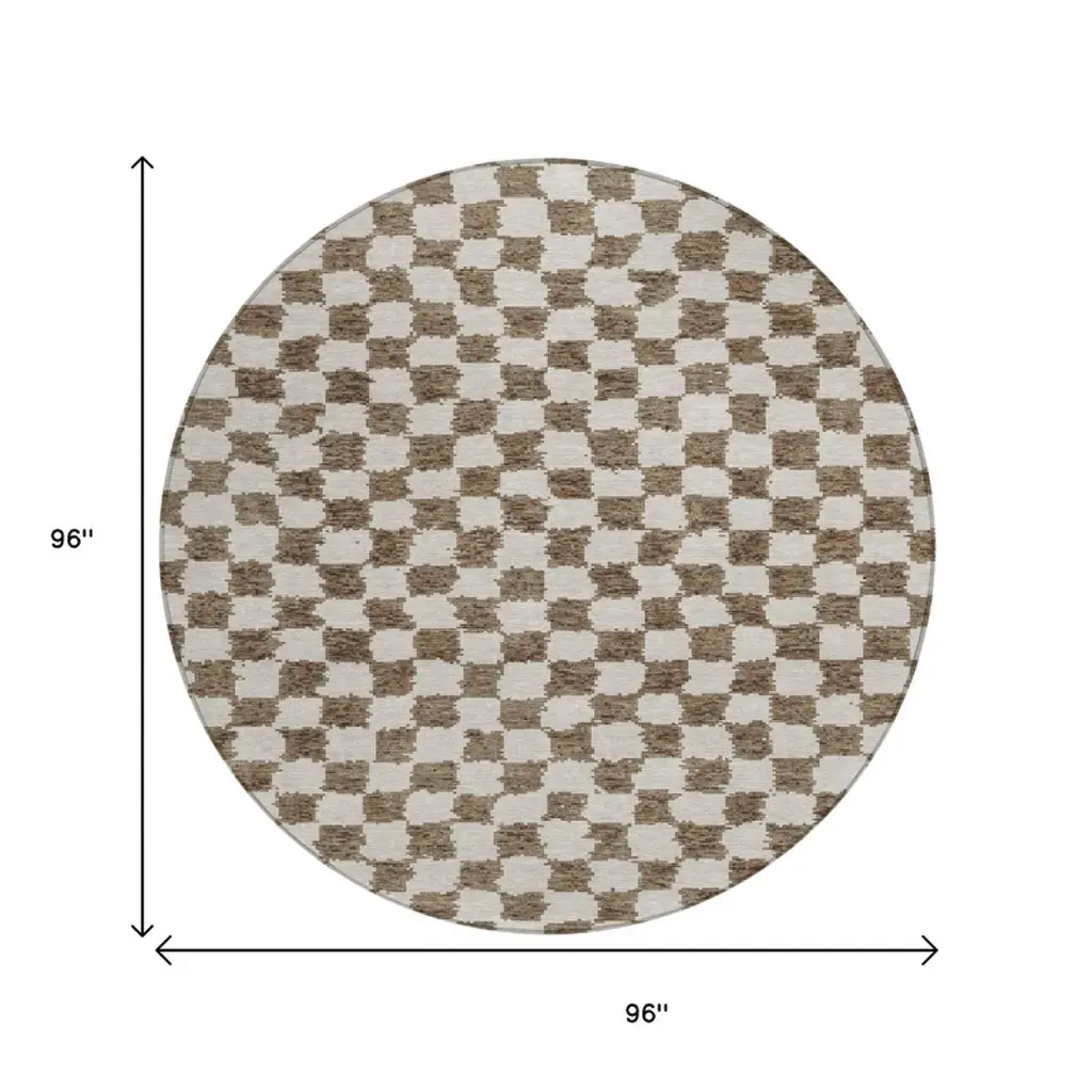 Homeroots 8' Brown And Ivory Round Geometric Washable Indoor Outdoor Area Rug