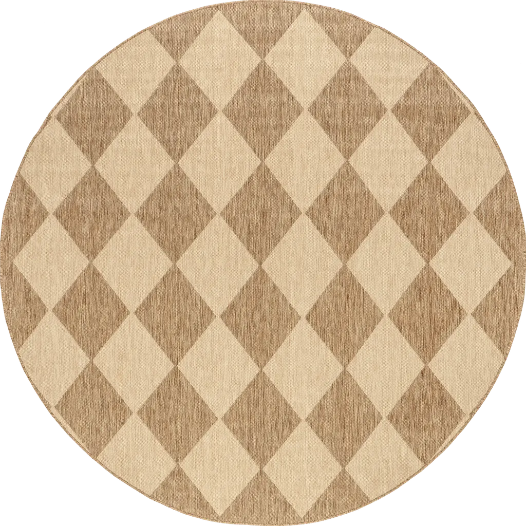 Add great coloration and comfortable texture to your space with this 8-foot brown and ivory round geometric washable indoor outdoor area rug. This geometric round shaped rug features a geometric pattern in brown and ivory that combines a good looking print with a unique and updated shape. The mix of shape, color, and design gives this rug refreshing visual interest. Ideal for outdoor spaces or high traffic areas with kids and pets, this rug is made from heavy duty polyester that is stain resistant to help repel water, dirt, and stains. Versatile in use, durable, and easy to maintain, this rug is an ideal solution to add a decorative and inviting touch to your indoor or outdoor space. 96-inch h x 96-inch w x 0.19-inch d.