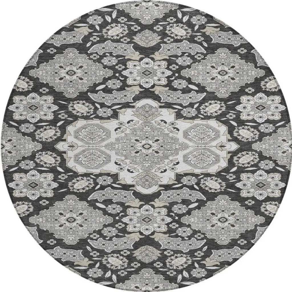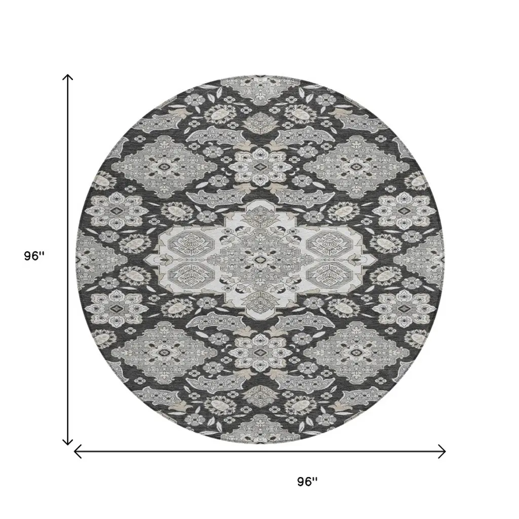 Homeroots 8' Charcoal Gray And Beige Round Medallion Washable Indoor Outdoor Area Rug
