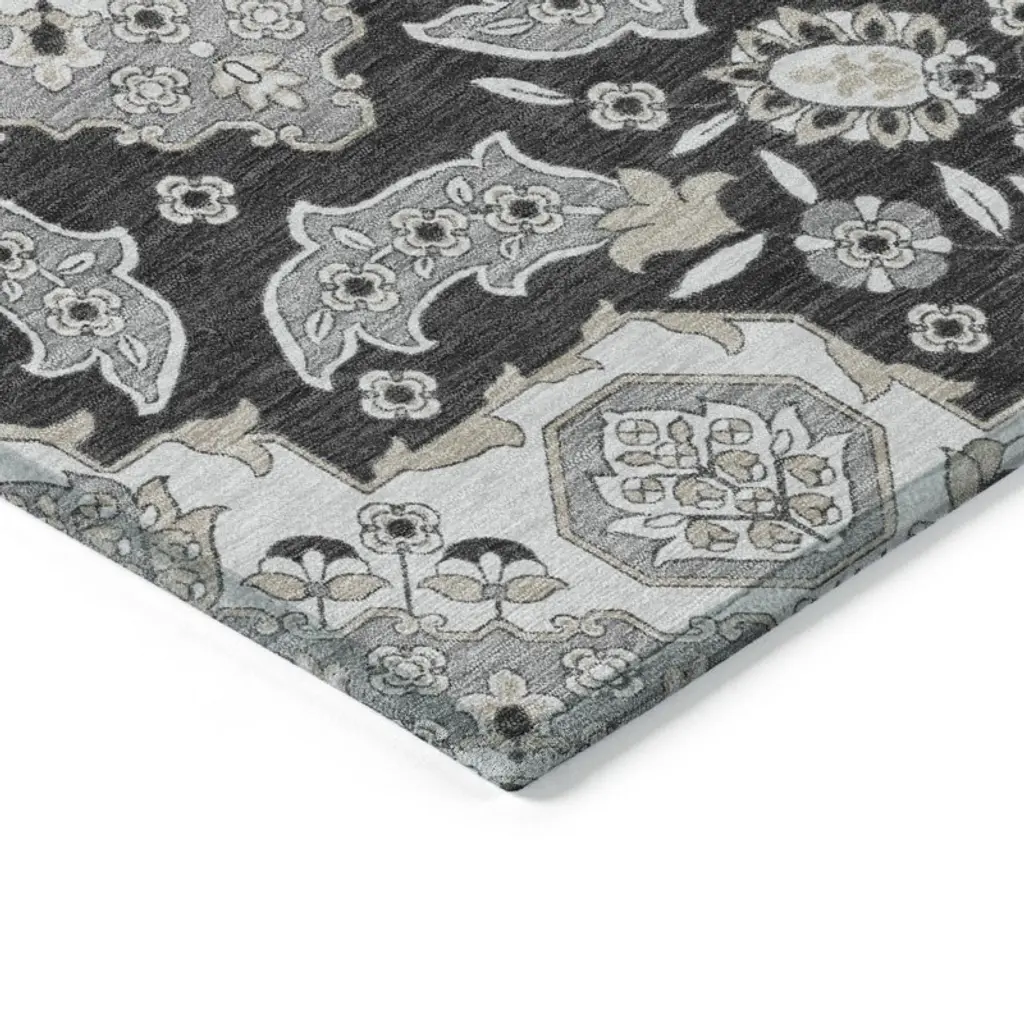 This 8-foot charcoal gray and beige round medallion washable indoor outdoor area rug, is a great way to add warmth to a room. This geometric round shaped rug features a medallion pattern in charcoal, gray, and beige that combines a good looking print with a unique and updated shape. The mix of shape, color, and design gives this rug refreshing visual interest. Ideal for outdoor spaces or high traffic areas with kids and pets, this rug is made from heavy duty polyester that is stain resistant to help repel water, dirt, and stains. Versatile in use, durable, and easy to maintain, this rug is an ideal solution to add a decorative and inviting touch to your indoor or outdoor space. 96-inch h x 96-inch w x 0.19-inch d.