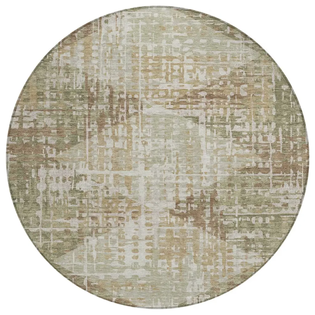 Add some artistry to your room with this 8-foot fern green and beige round geometric washable indoor outdoor area rug. This geometric round shaped rug features a geometric pattern in fern green and beige that combines a good looking print with a unique and updated shape. The mix of shape, color, and design gives this rug refreshing visual interest. Ideal for outdoor spaces or high traffic areas with kids and pets, this rug is made from heavy duty polyester that is stain resistant to help repel water, dirt, and stains. Versatile in use, durable, and easy to maintain, this rug is an ideal solution to add a decorative and inviting touch to your indoor or outdoor space. 96-inch h x 96-inch w x 0.19-inch d.