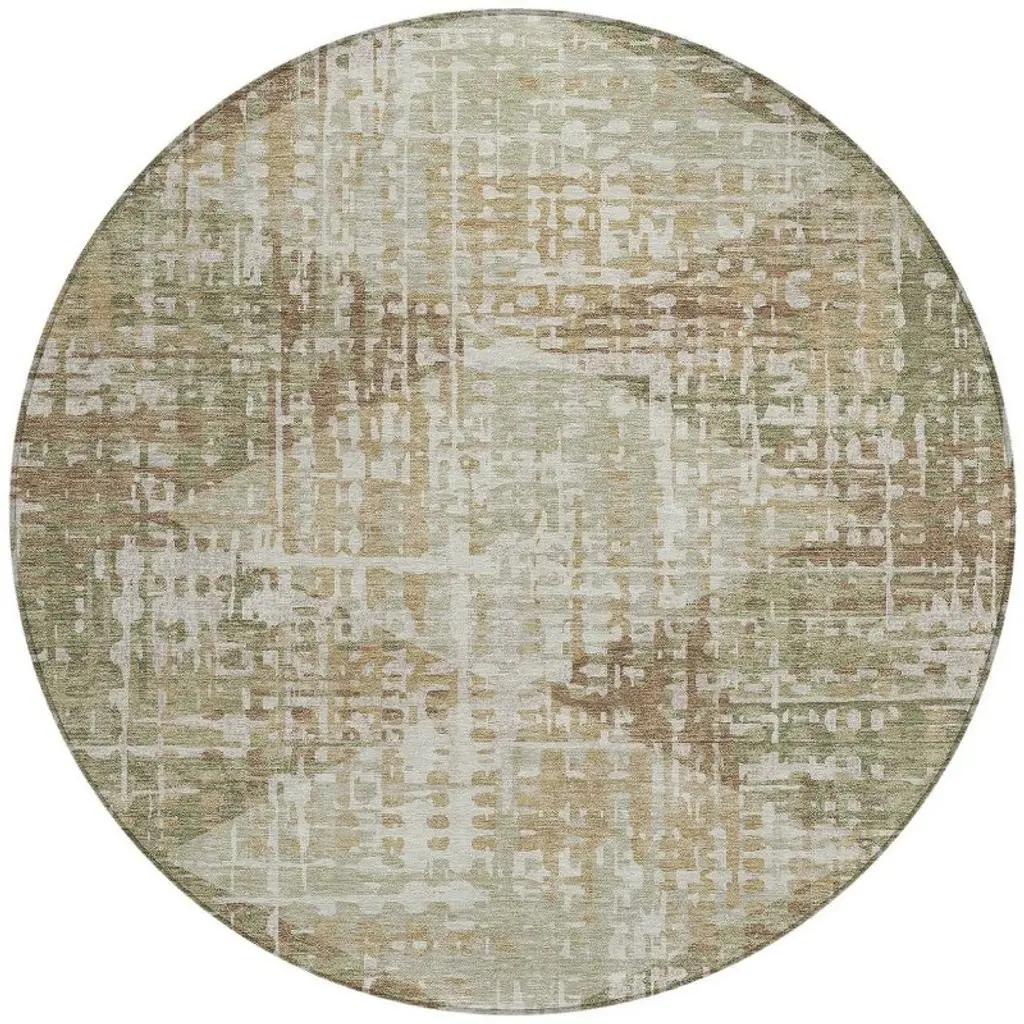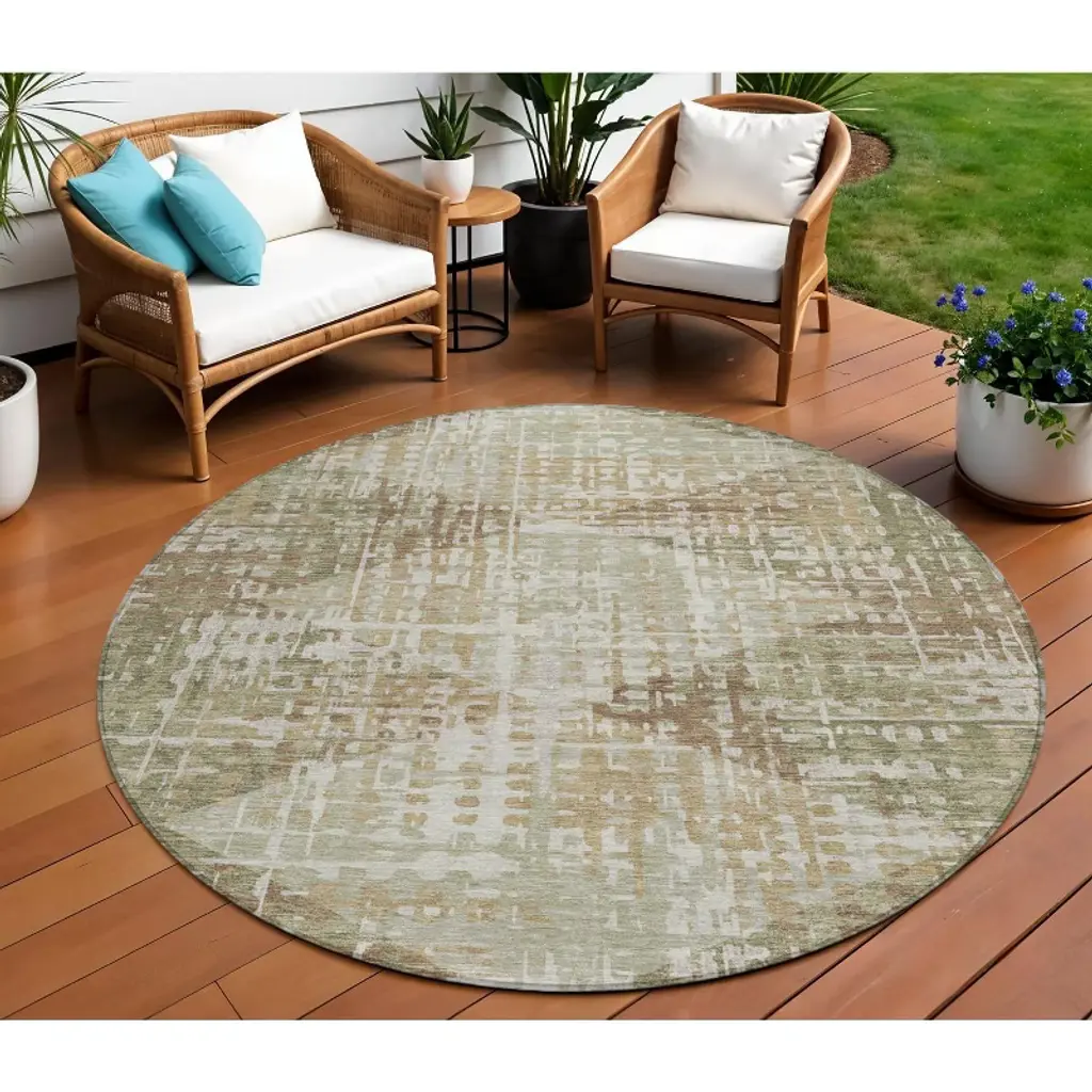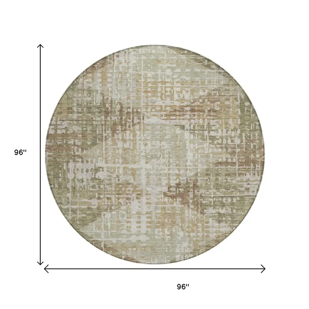 Homeroots 8' Fern Green And Beige Round Geometric Washable Indoor Outdoor Area Rug