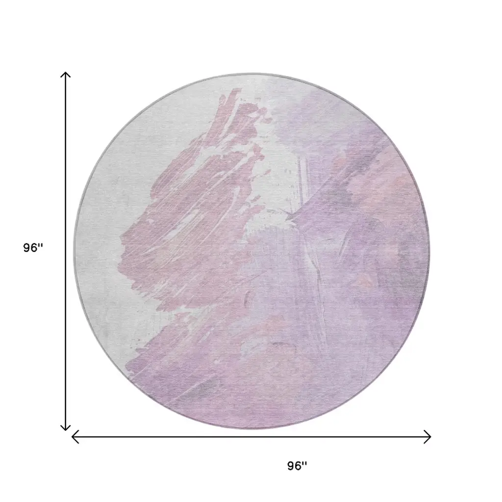 Homeroots 8' Lavender Ivory And Mauve Round Abstract Washable Indoor Outdoor Area Rug