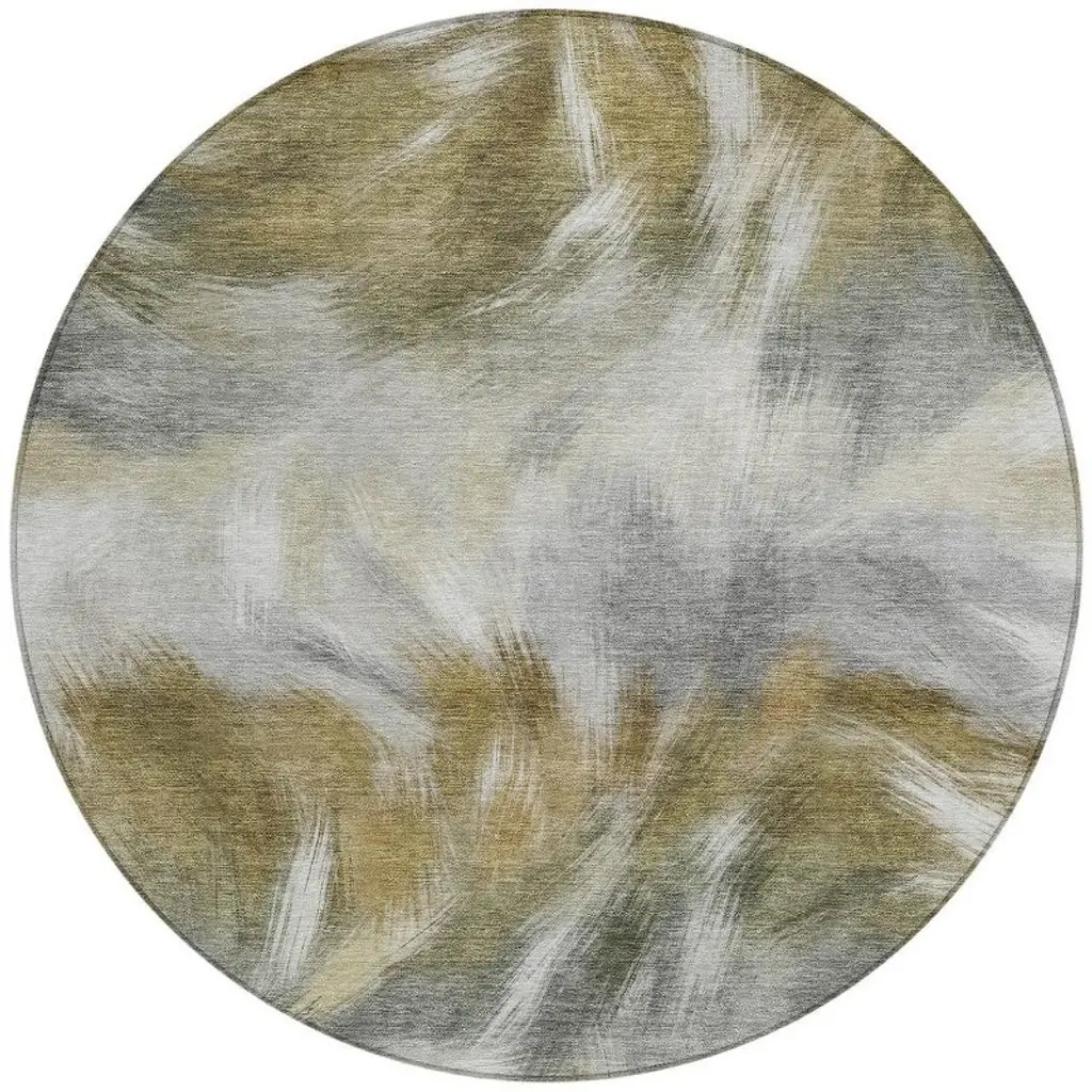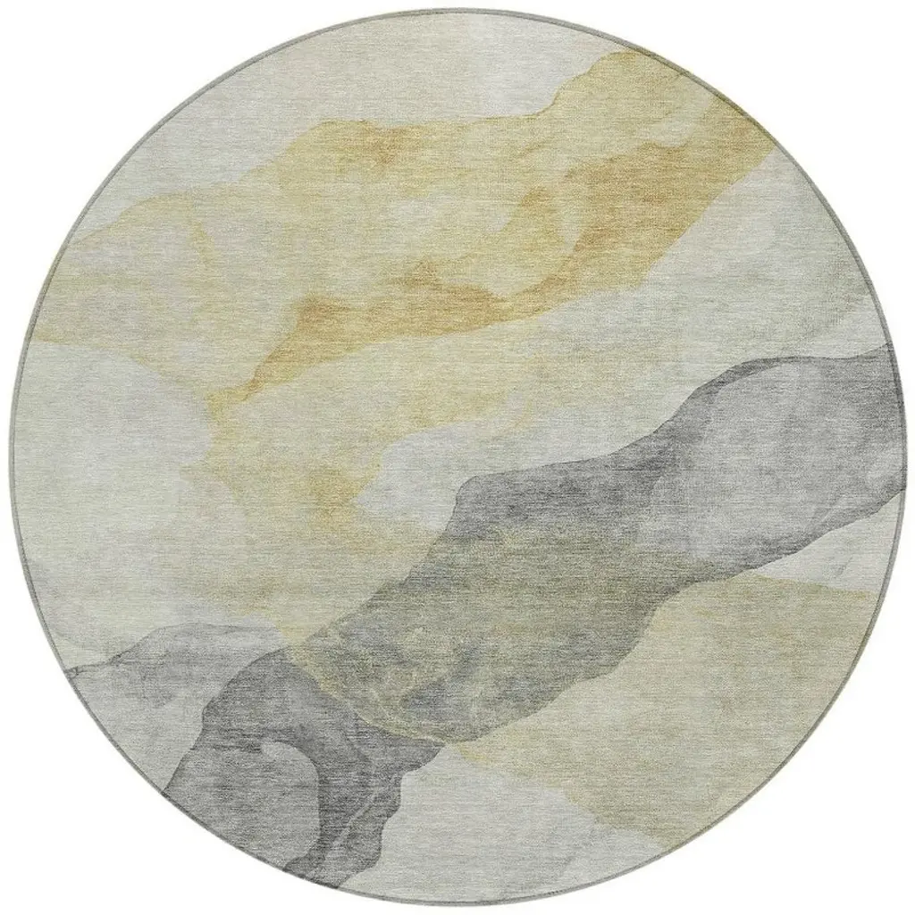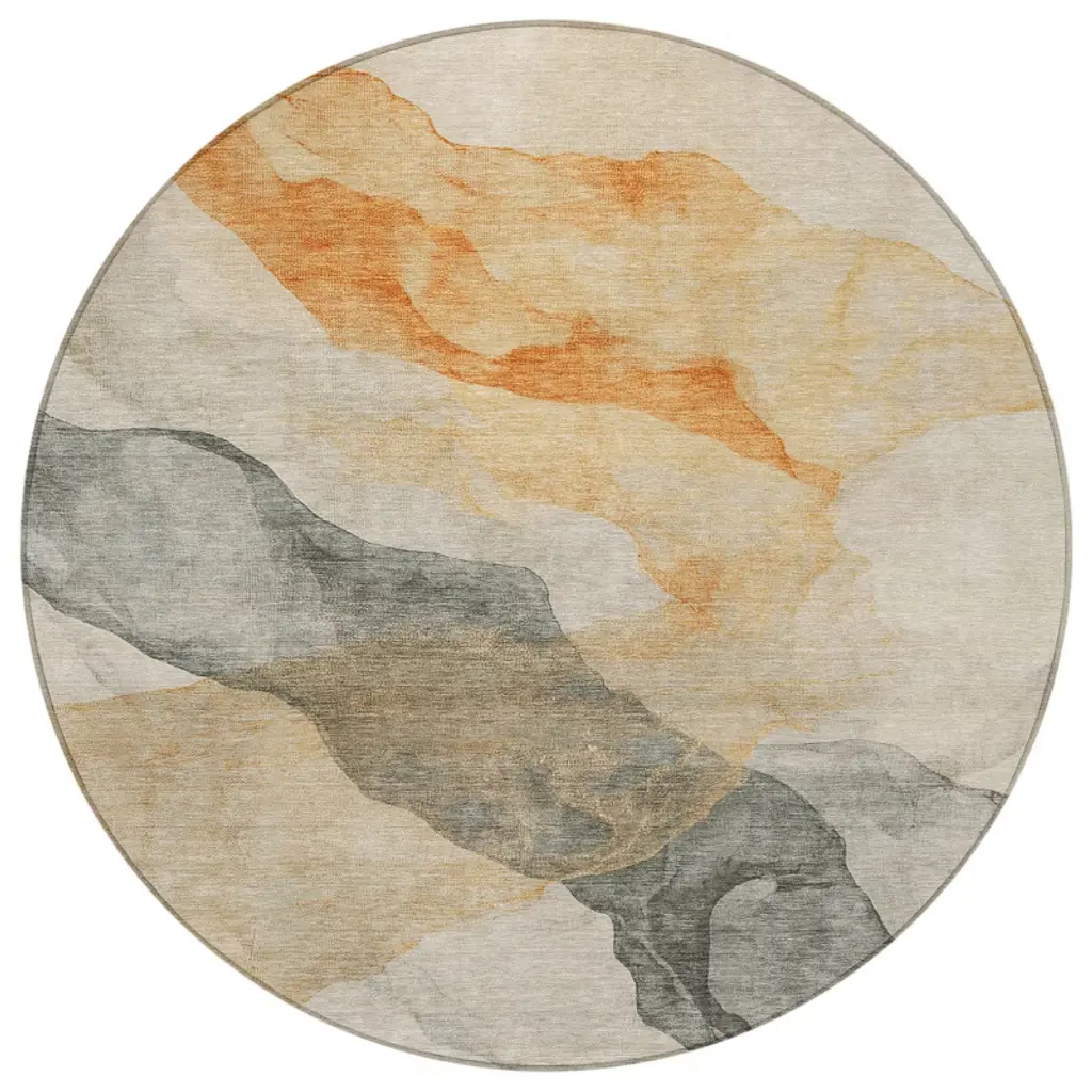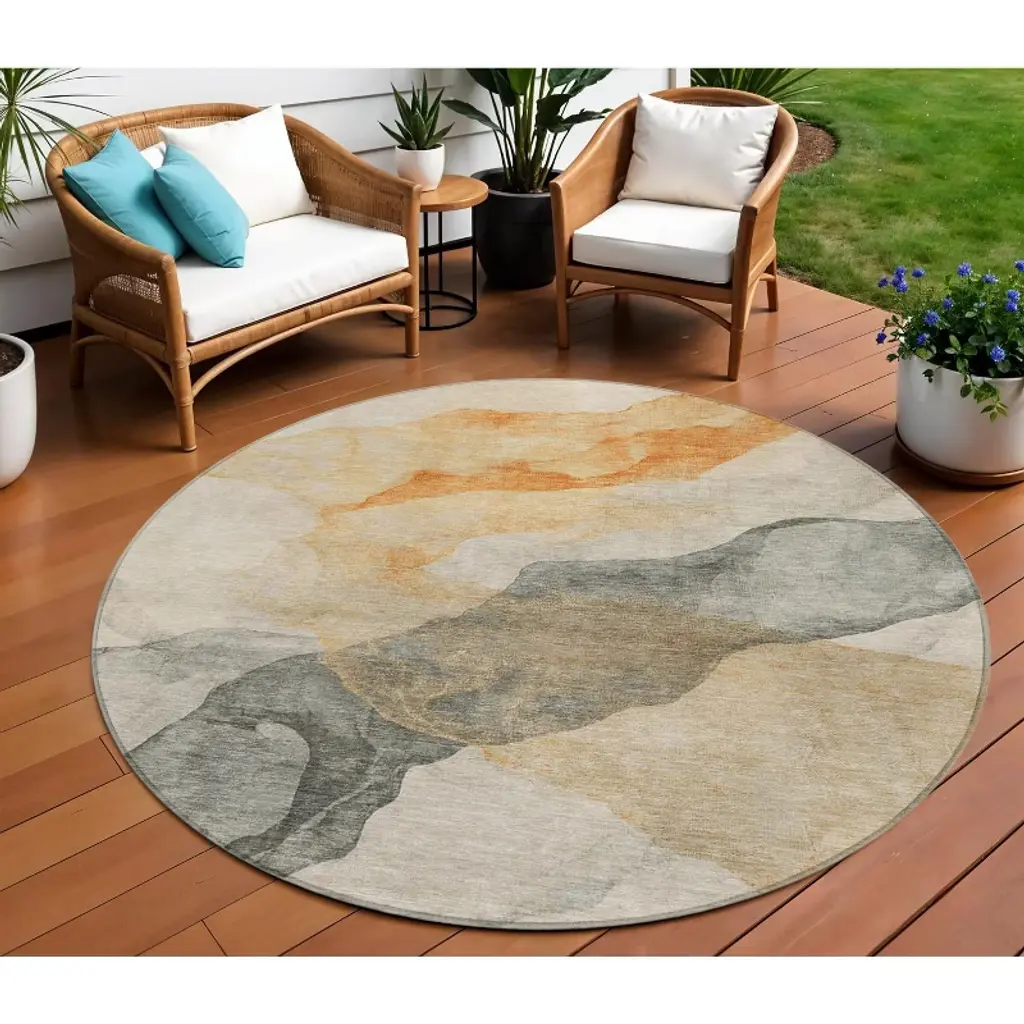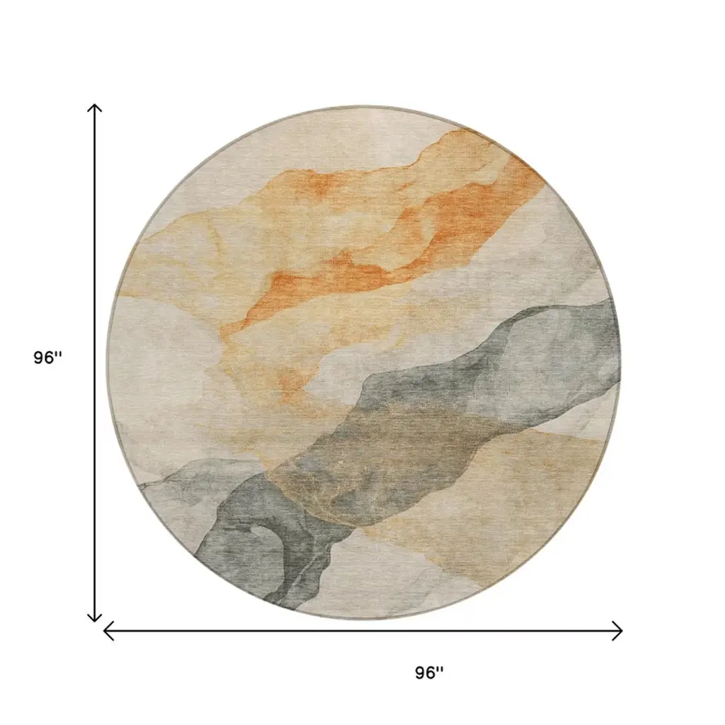 Homeroots 8' Orange And Gray Round Abstract Washable Indoor Outdoor Area Rug