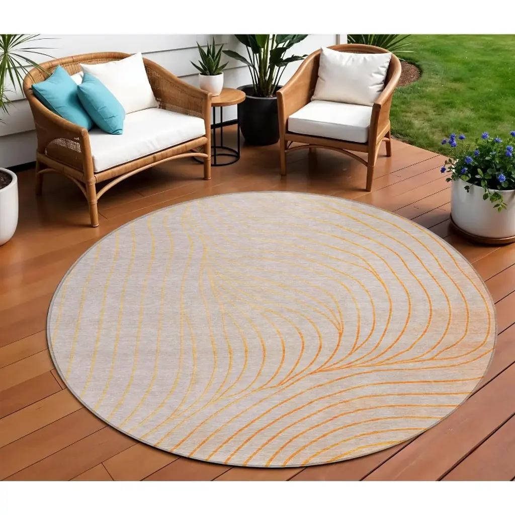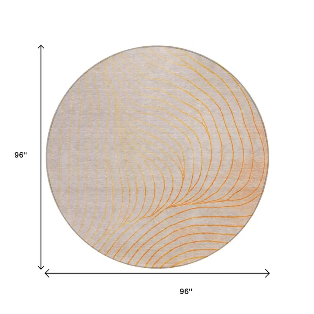 Homeroots 8' Orange And Silver Round Abstract Washable Indoor Outdoor Area Rug