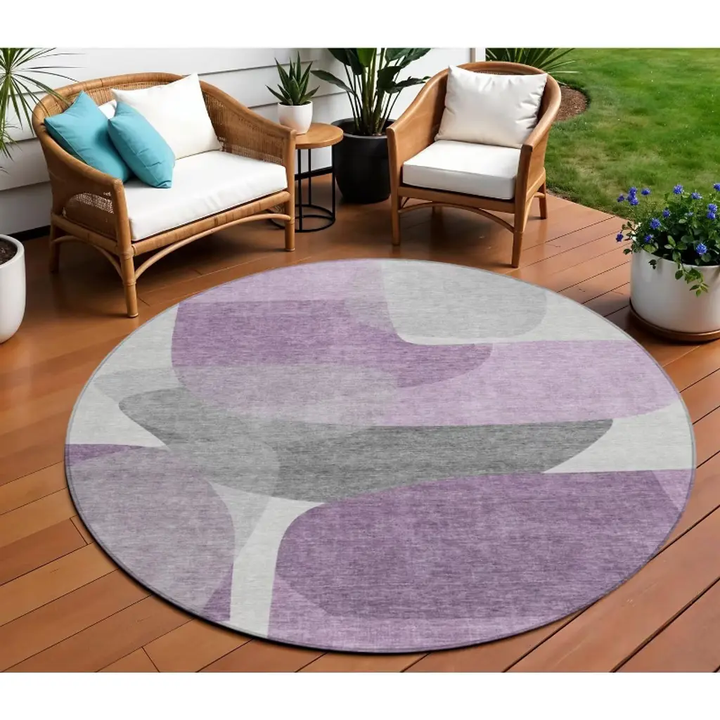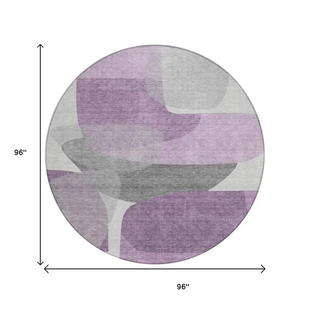 Homeroots 8' Purple And Gray Round Abstract Washable Indoor Outdoor Area Rug