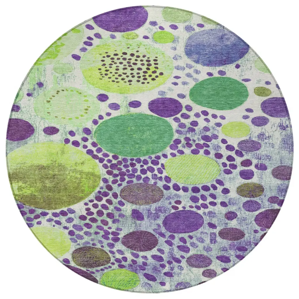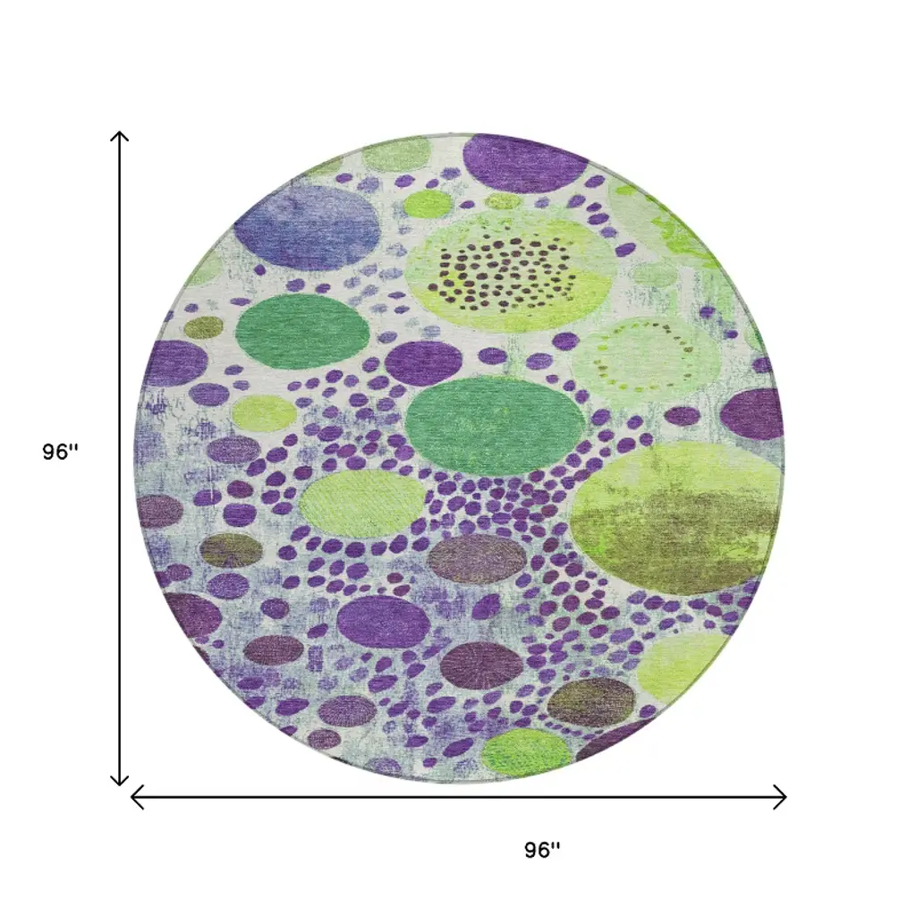 Homeroots 8' Purple Green And Ivory Round Geometric Washable Indoor Outdoor Area Rug