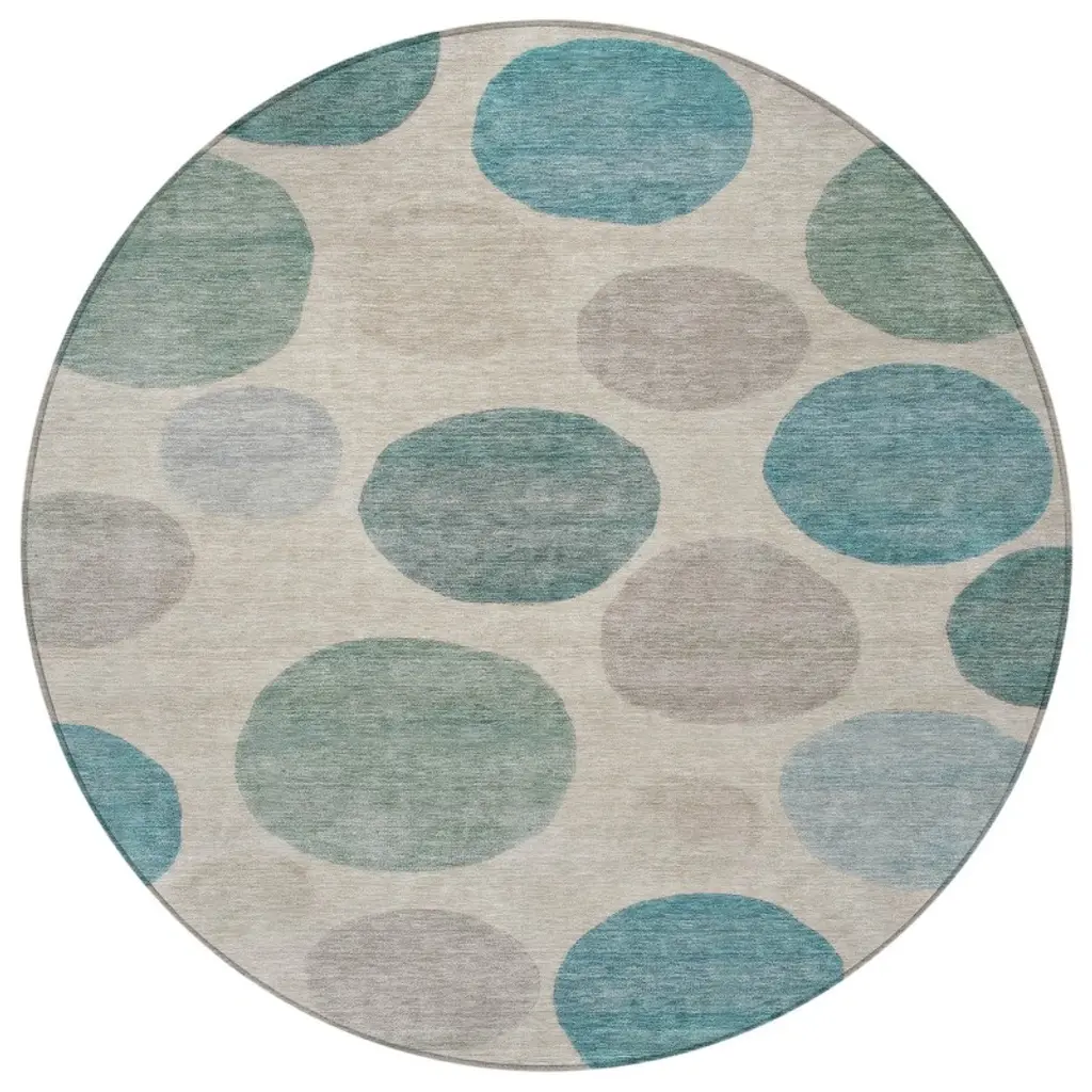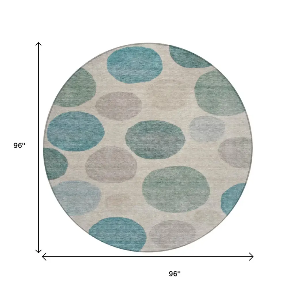 Homeroots 8' Teal Blue Ivory And Pale Aqua Round Geometric Washable Indoor Outdoor Area Rug