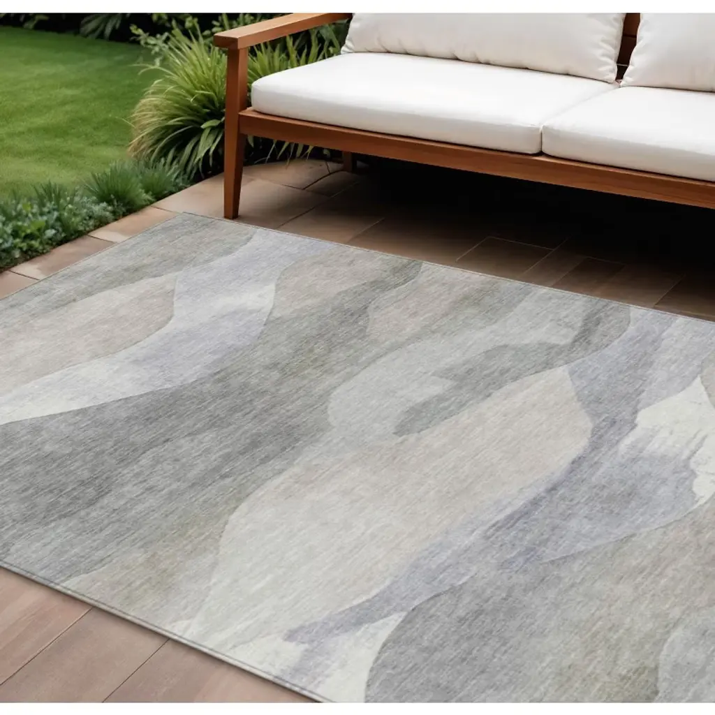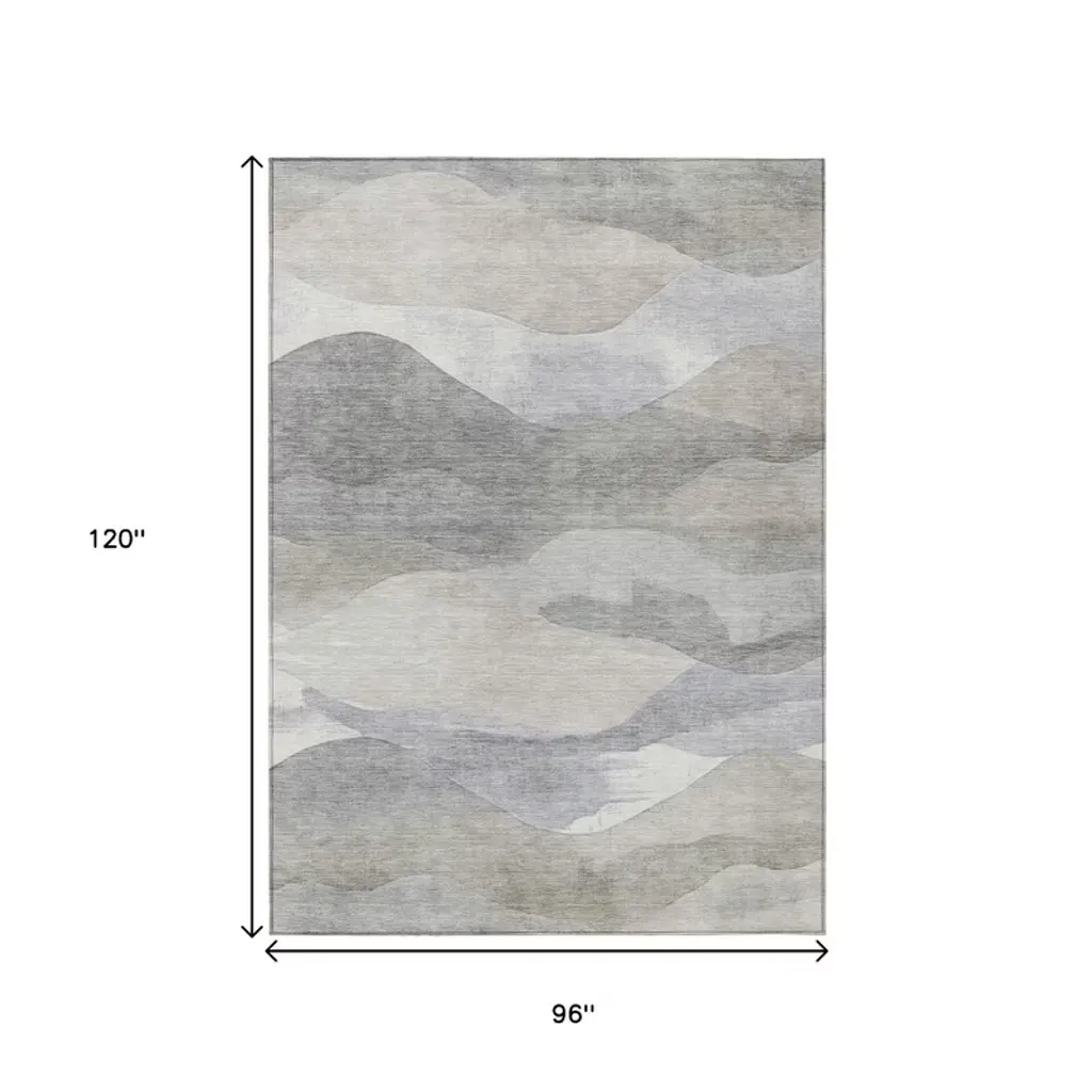 Homeroots 8' X 10' Beige And Gray Abstract Washable Indoor Outdoor Area Rug