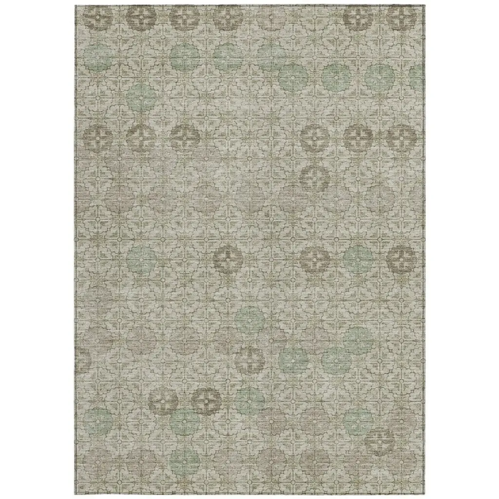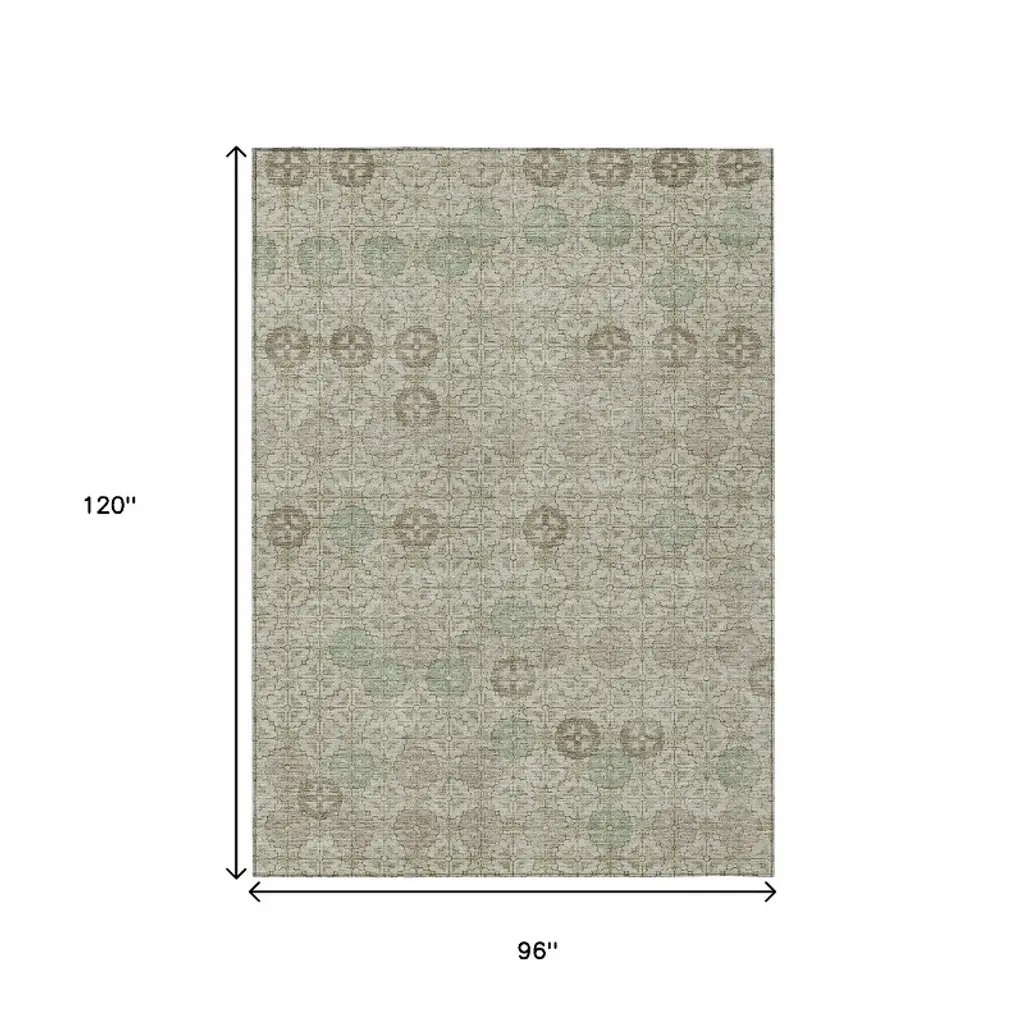 Set an inviting tone in your space with this 8-foot x 10-foot beige and pale aqua geometric washable indoor outdoor area rug. This rectangle shaped rug features a geometric design that will work well both indoors or out. A classic shape marries with good looking design for your living room, hall, bedroom, porch, patio, or poolside. Ideal for outdoor spaces or high traffic areas with kids and pets, this rug is made from heavy duty polyester that is stain resistant to help repel water, dirt, and stains. Versatile in use, durable, and easy to maintain, this rug is an ideal solution to add a decorative and inviting touch to your indoor or outdoor space. 96-inch h x 120-inch w x 0.19-inch d.