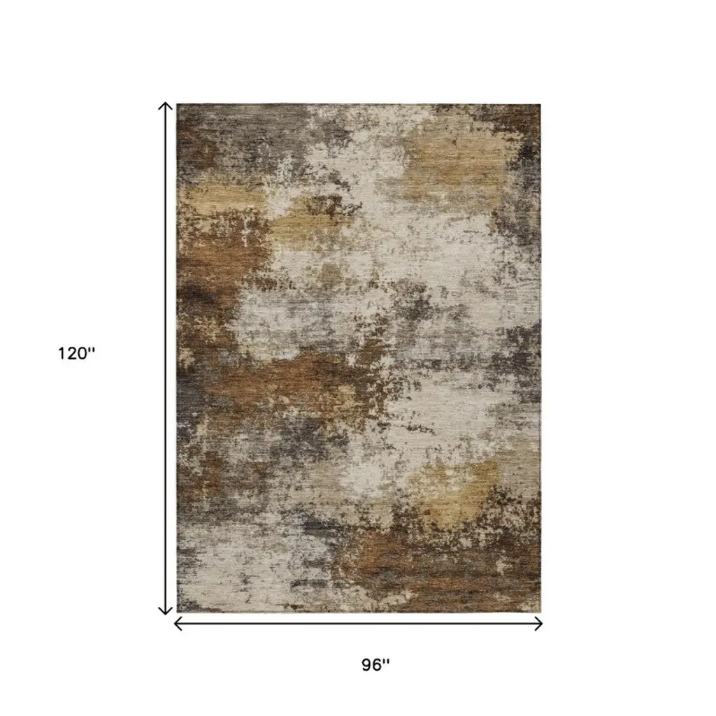 Homeroots 8' X 10' Brown And Beige Abstract Washable Indoor Outdoor Area Rug