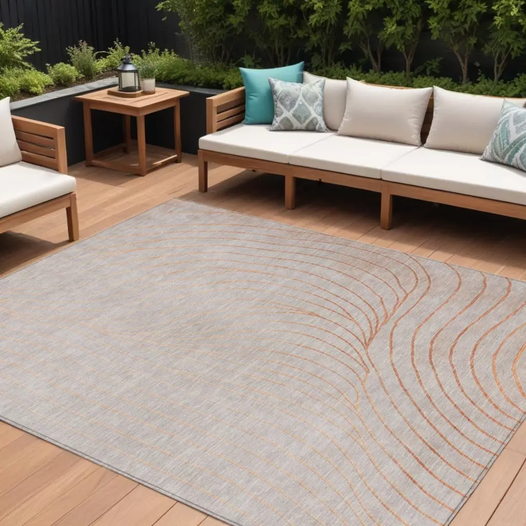 Add some artistry to your room with this 8-foot x 10-foot copper and silver abstract washable indoor outdoor area rug. This rectangle shaped rug features a abstract design that will work well both indoors or out. A classic shape marries with good looking design for your living room, hall, bedroom, porch, patio, or poolside. Ideal for outdoor spaces or high traffic areas with kids and pets, this rug is made from heavy duty polyester that is stain resistant to help repel water, dirt, and stains. Makes a great way to dress up your patio, porch, or poolside, but also works well as a durable and easy to maintain option in the kitchen, family room, or mudroom. 96-inch h x 120-inch w x 0.19-inch d.