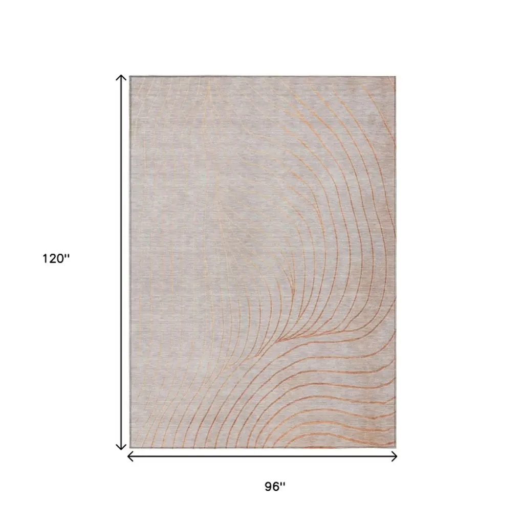 Homeroots 8' X 10' Copper And Silver Abstract Washable Indoor Outdoor Area Rug