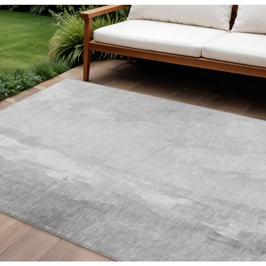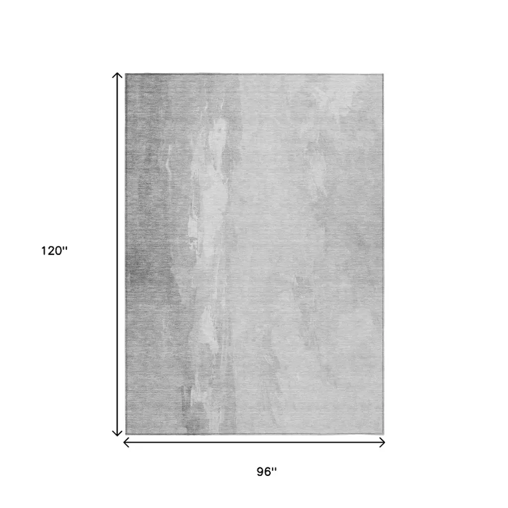 Homeroots 8' X 10' Gray And Ivory Abstract Washable Indoor Outdoor Area Rug