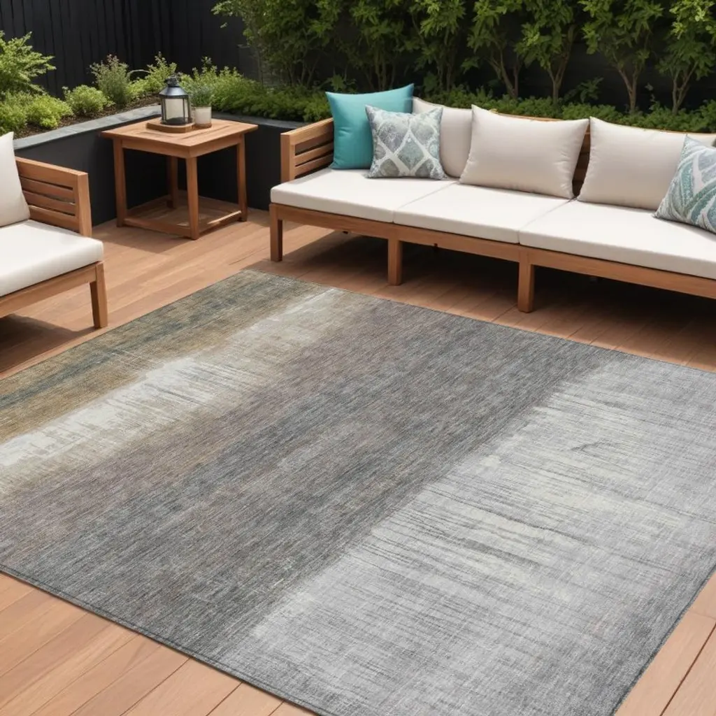 Add some artistry to your room with this 8-foot x 10-foot taupe and gray abstract washable indoor outdoor area rug. This rectangle shaped rug features a abstract design that will work well both indoors or out. A classic shape marries with good looking design for your living room, hall, bedroom, porch, patio, or poolside. Ideal for outdoor spaces or high traffic areas with kids and pets, this rug is made from heavy duty polyester that is stain resistant to help repel water, dirt, and stains. Makes a great way to dress up your patio, porch, or poolside, but also works well as a durable and easy to maintain option in the kitchen, family room, or mudroom. 96-inch h x 120-inch w x 0.19-inch d.
