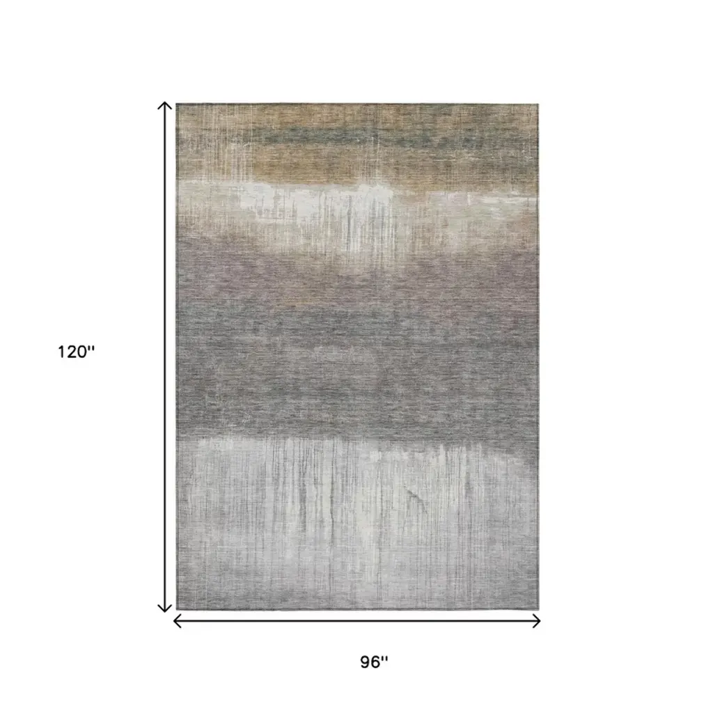 Homeroots 8' X 10' Taupe And Gray Abstract Washable Indoor Outdoor Area Rug