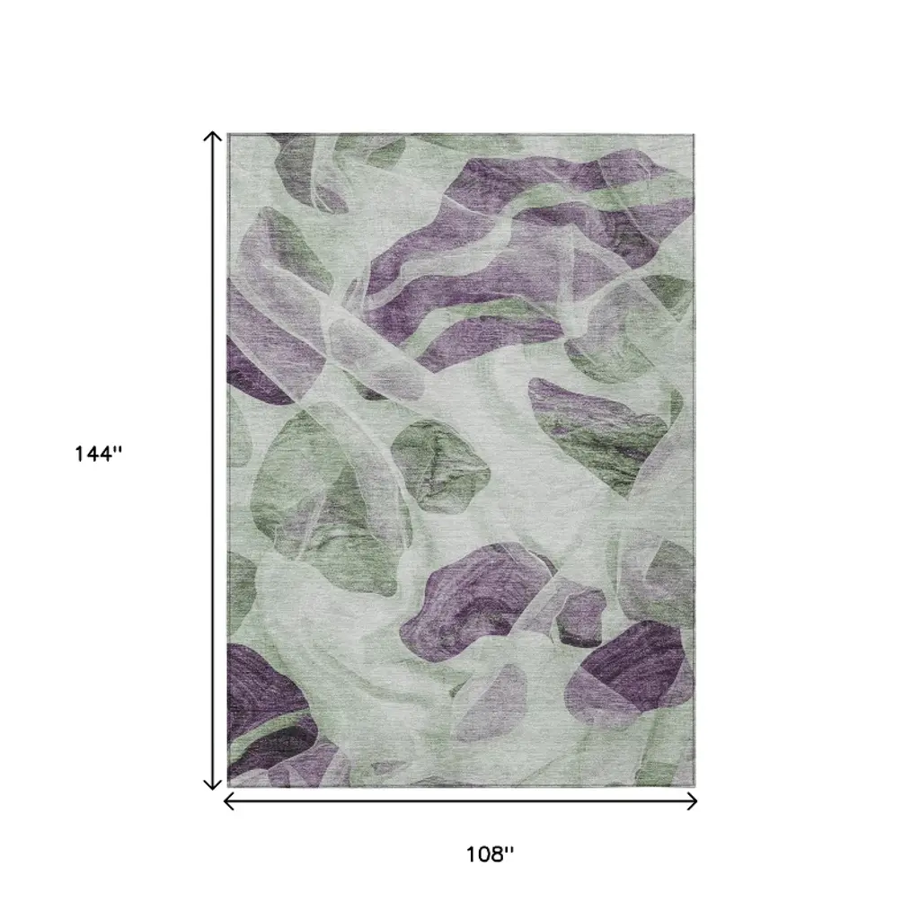 Homeroots 9' X 12' Artichoke Green And Purple Abstract Washable Indoor Outdoor Area Rug