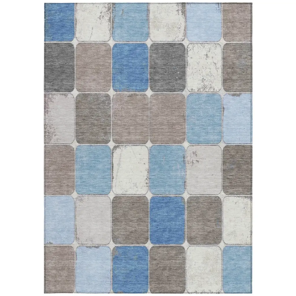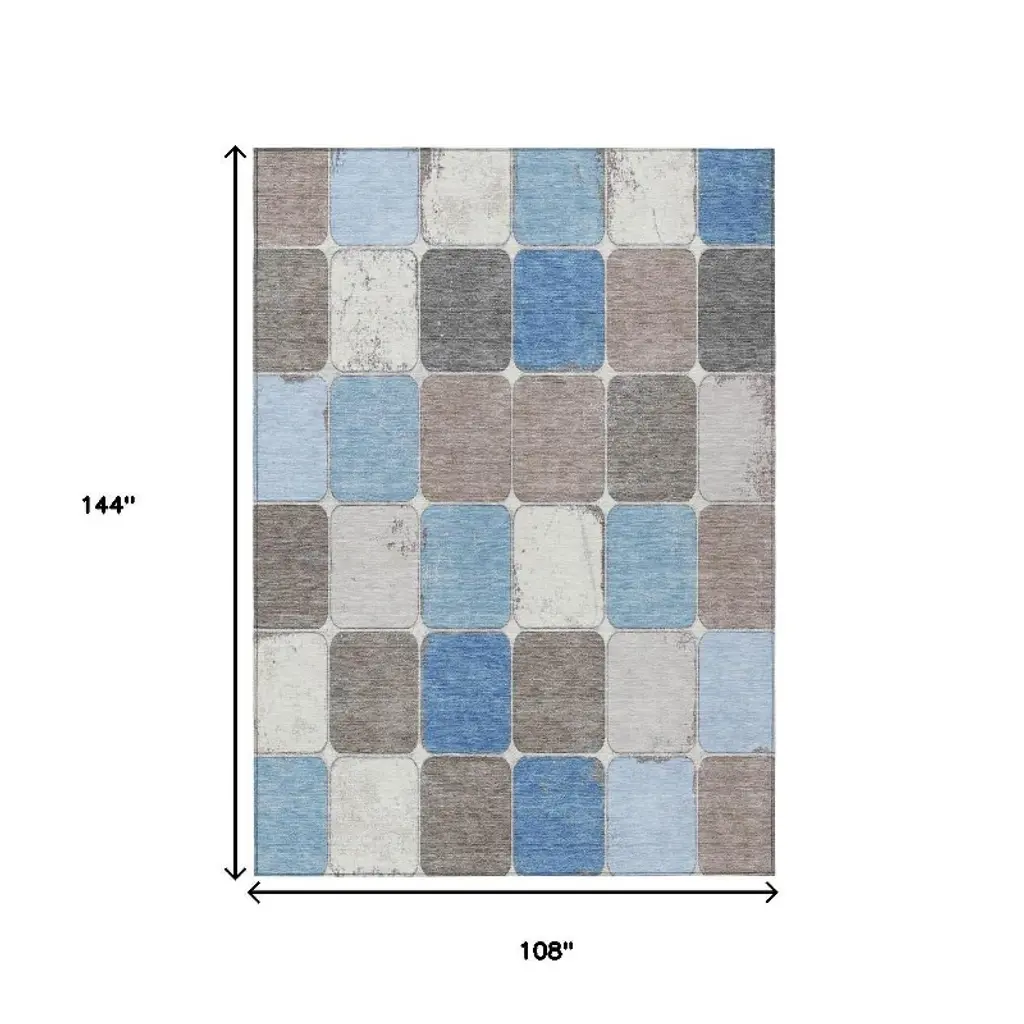 Homeroots 9' X 12' Blue And Gray Geometric Washable Indoor Outdoor Area Rug