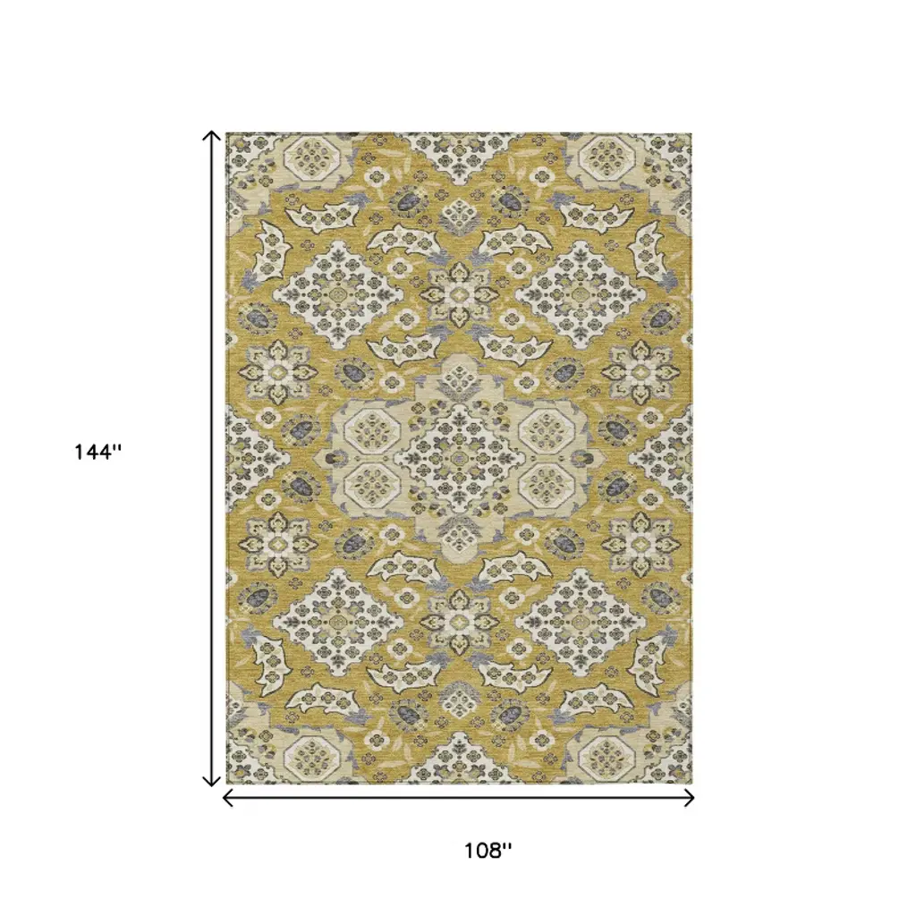 Homeroots 9' X 12' Gold Beige And Gray Medallion Washable Indoor Outdoor Area Rug