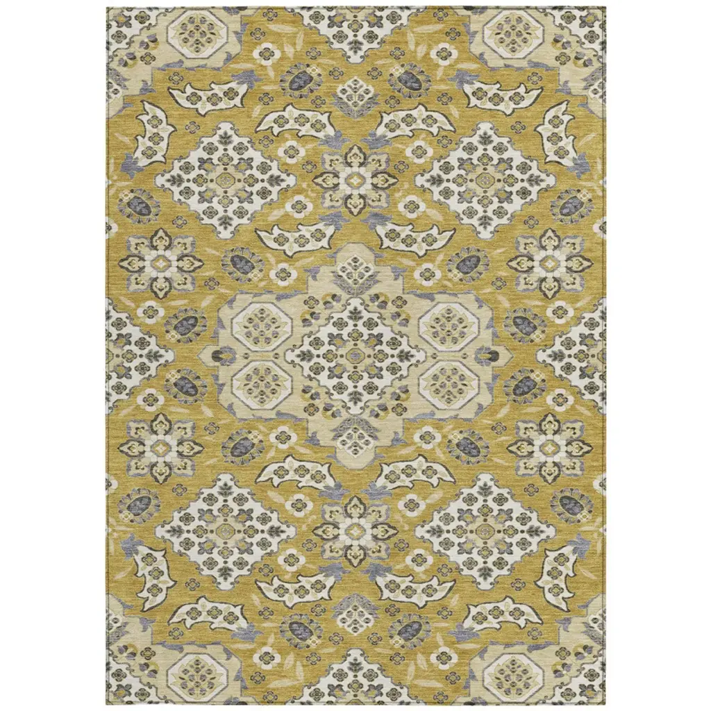 Add great coloration and comfortable texture to your space with this 9-foot x 12-foot gold beige and gray medallion washable indoor outdoor area rug. This rectangle shaped rug features a medallion design that will work well both indoors or out. A classic shape marries with good looking design for your living room, hall, bedroom, porch, patio, or poolside. Ideal for outdoor spaces or high traffic areas with kids and pets, this rug is made from heavy duty polyester that is stain resistant to help repel water, dirt, and stains. Makes a great way to dress up your patio, porch, or poolside, but also works well as a durable and easy to maintain option in the kitchen, family room, or mudroom. 108-inch h x 144-inch w x 0.19-inch d.