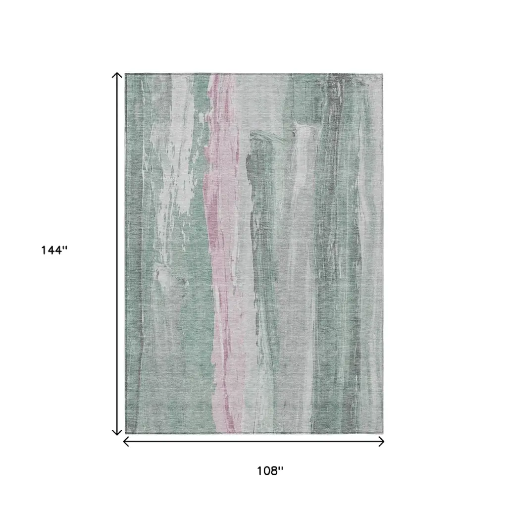 Homeroots 9' X 12' Sage And Blush Abstract Washable Indoor Outdoor Area Rug