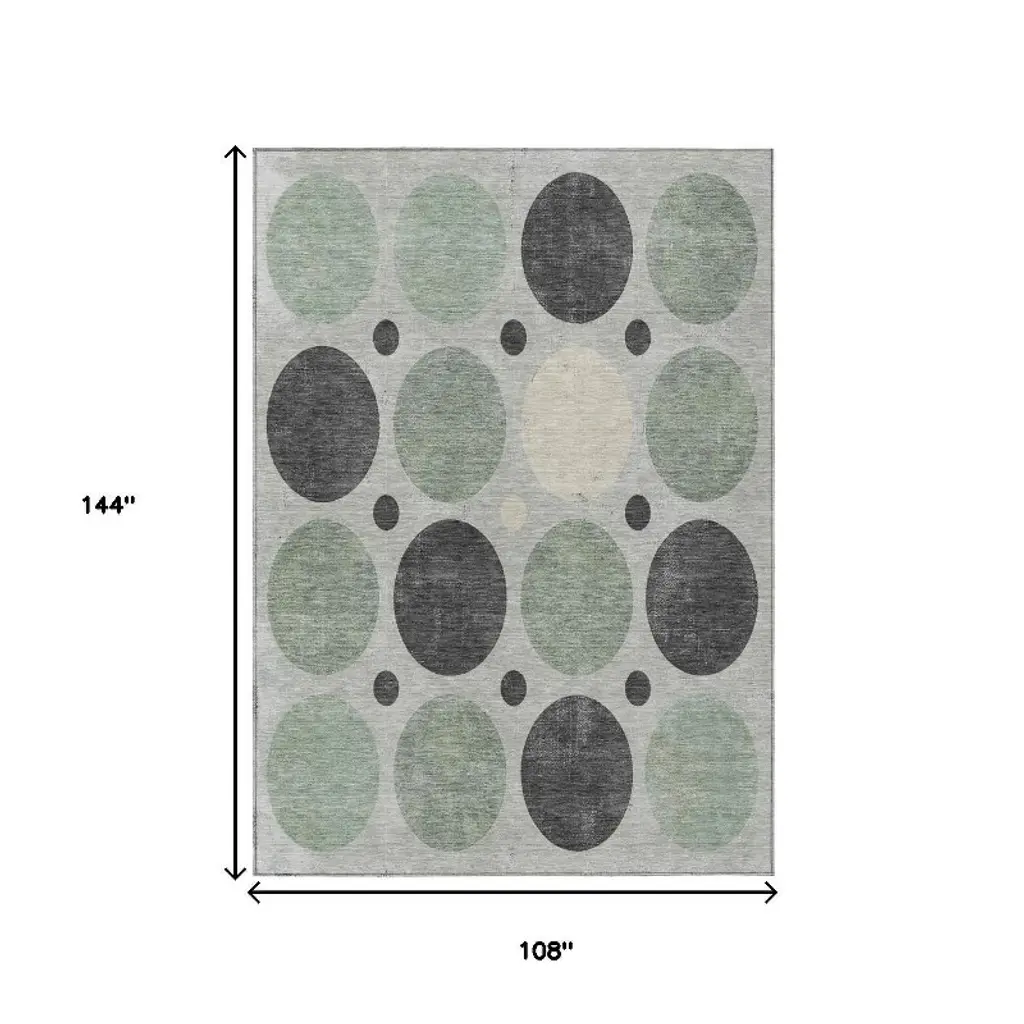 Homeroots 9' X 12' Sage Charcoal And Ivory Geometric Washable Indoor Outdoor Area Rug