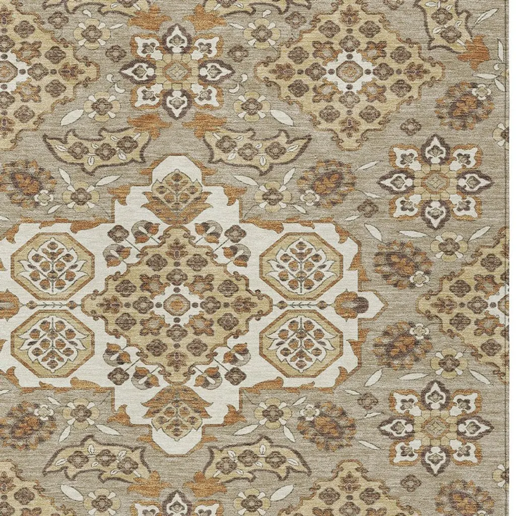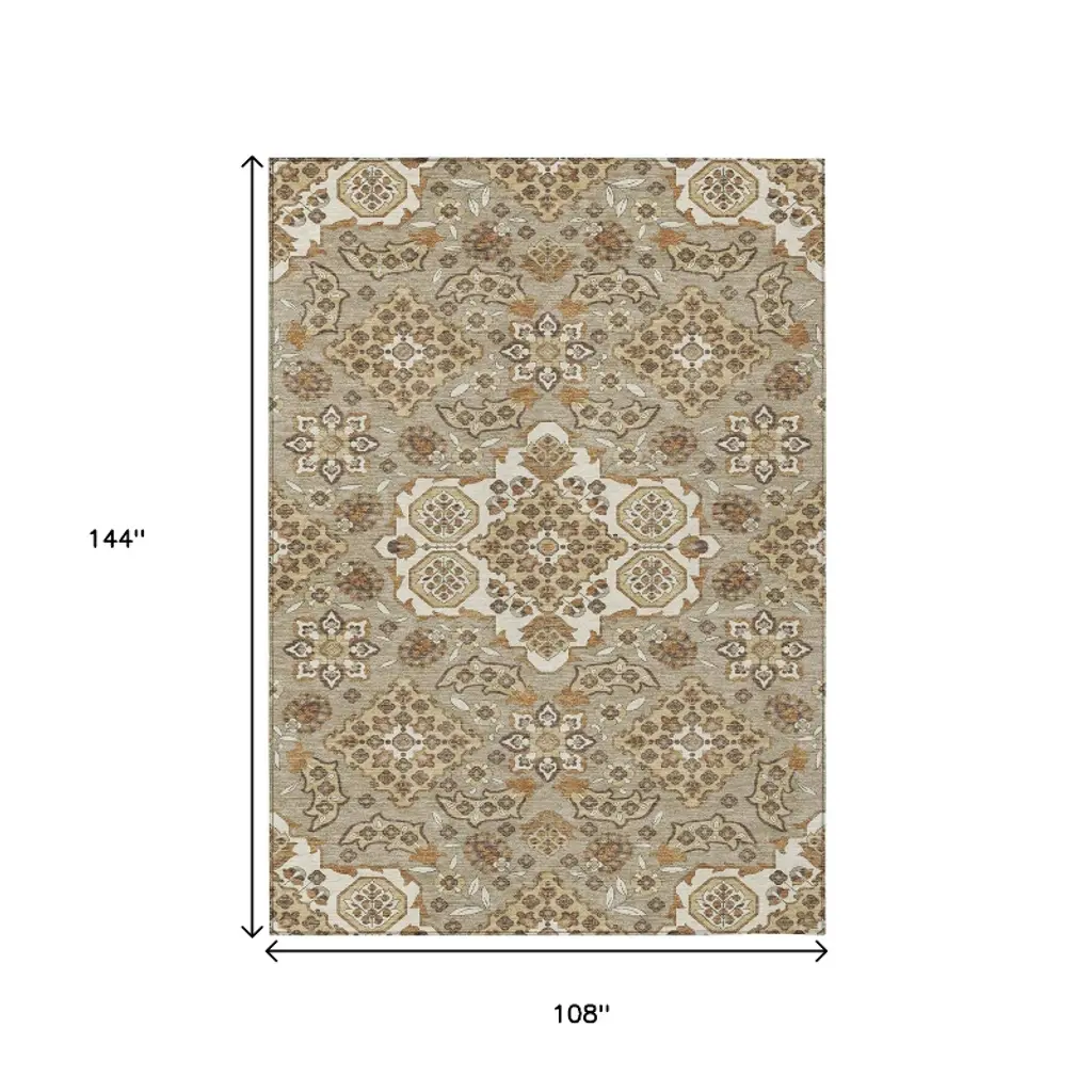 Homeroots 9' X 12' Taupe Copper And Beige Medallion Washable Indoor Outdoor Area Rug