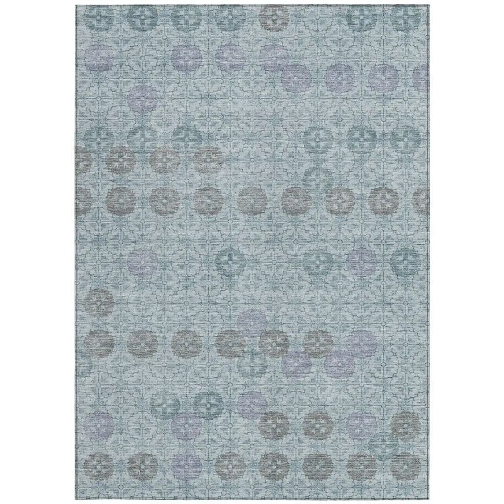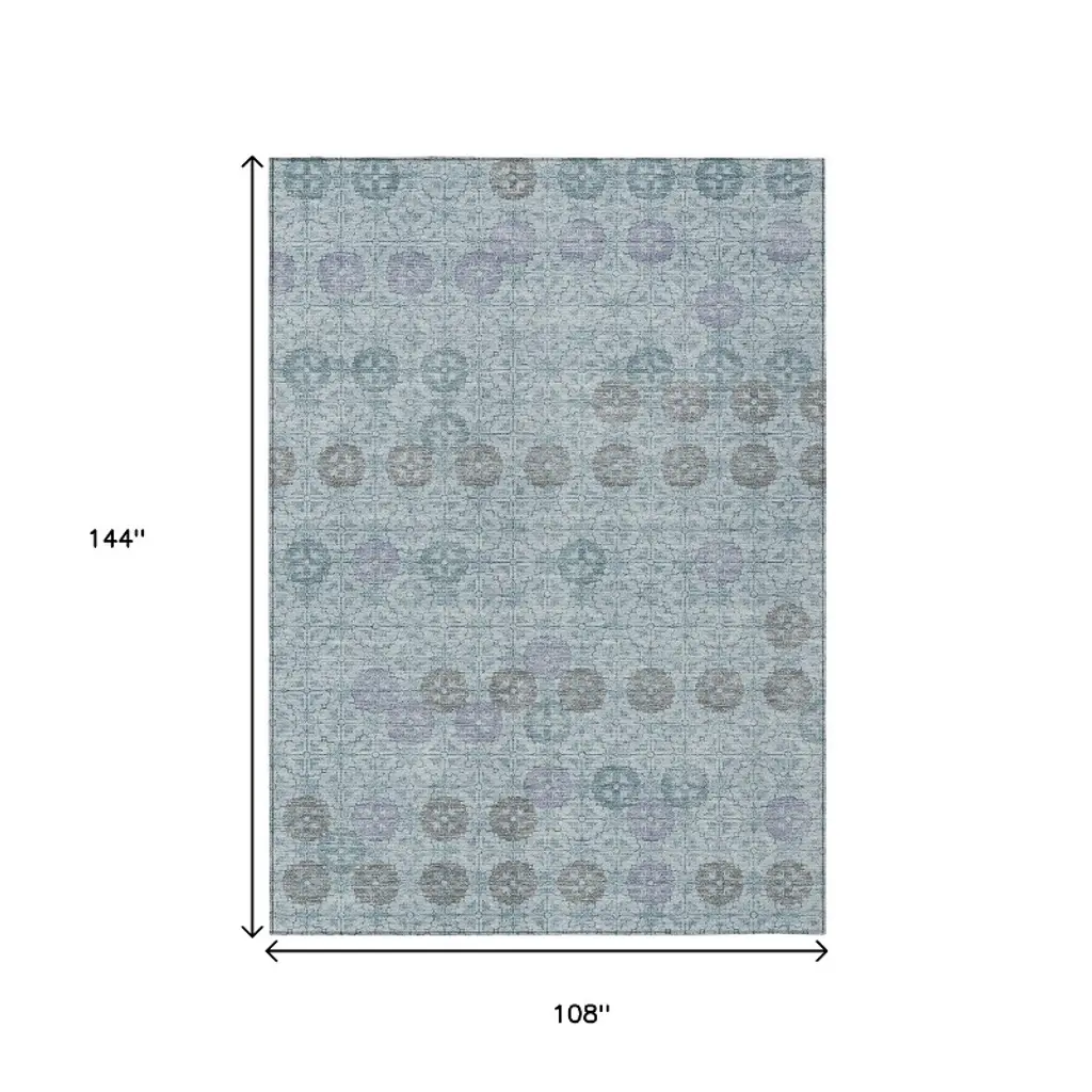 Homeroots 9' X 12' Teal Blue And Gray Geometric Washable Indoor Outdoor Area Rug