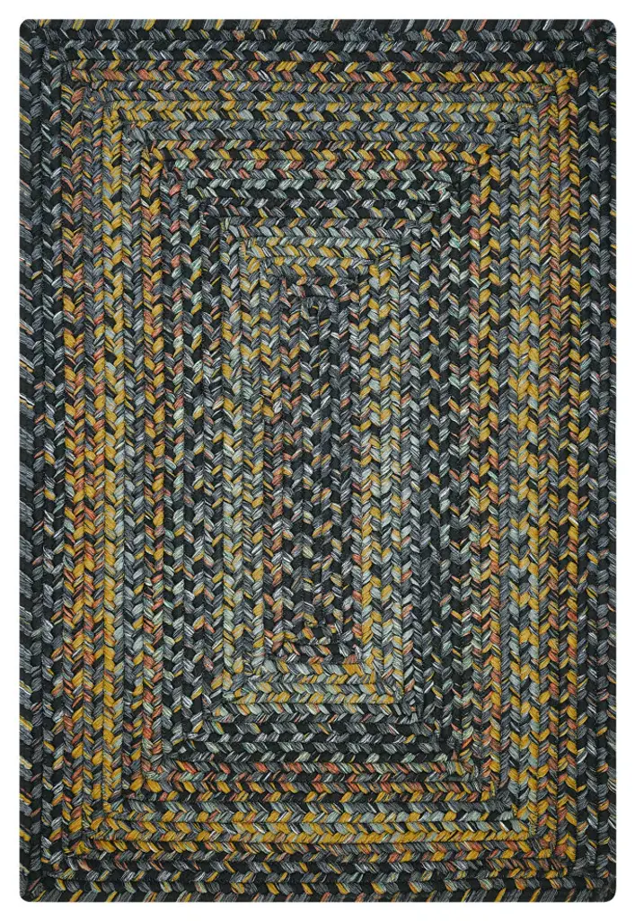 Homespice Decor Black Forest Indoor/Outdoor Braided Rug 6'' x 9'' RectangularA striking combination of blacks and greys flecked with mustard brings to mind the dark beauty of winter forests. There is no need to compromise beauty for durability. Our Ultra Durable indoor/outdoor rugs are amazing. They resist stains from food, pets, and liquids, while adding color, texture and interest to all your living spaces. This amazing absorbent material leaves the surface below dry with most moderate spills. To clean, simply run under water in your sink or use a hose.Care Instructions : Rinse or hose with water and lay flat to dry. May use a mild detergent. Vacuum regularly using a hard surface attachment. Vacuuming with a beater brush is not recommended.Double Sided Backing Ultra Durable Braided Rugs60% Olefin , 20% viscose, 20% polyester
