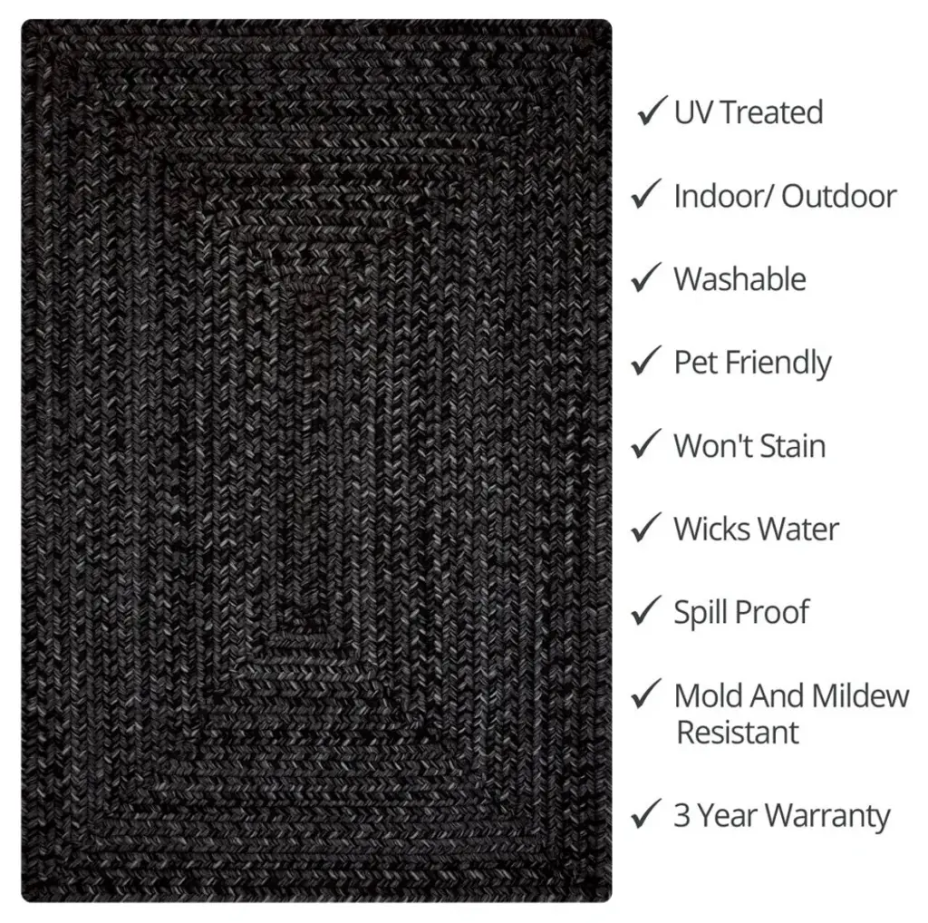 Homespice Decor Black Indoor/outdoor Braided Rug 6'x9' Rectangular
