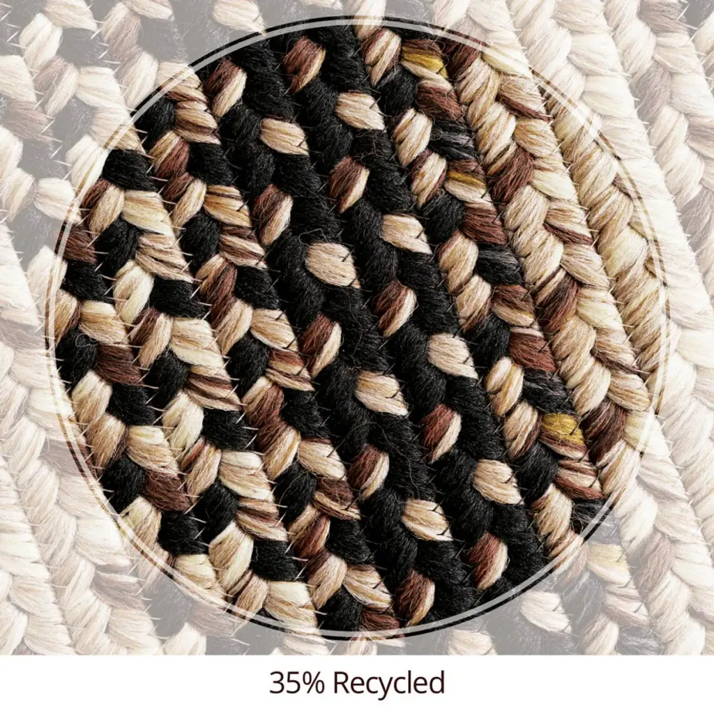 Homespice Decor Black Mist Indoor/Outdoor Braided Rug 20" x 30" RectangularThis rug offers a dramatic display of black, softened with shades of brown and cream. There is no need to compromise beauty for durability. Our Ultra Durable indoor/outdoor rugs are amazing. They resist stains from food, pets, and liquids, while adding color, texture and interest to all your living spaces. This amazing absorbent material leaves the surface below dry with most moderate spills. To clean, simply run under water in your sink or use a hose.Care Instructions : Rinse or hose with water and lay flat to dry. May use a mild detergent. Vacuum regularly using a hard surface attachment. Vacuuming with a beater brush is not recommended.Double Sided Backing Ultra Durable Braided Rugs60% Olefin , 20% viscose, 20% polyester
